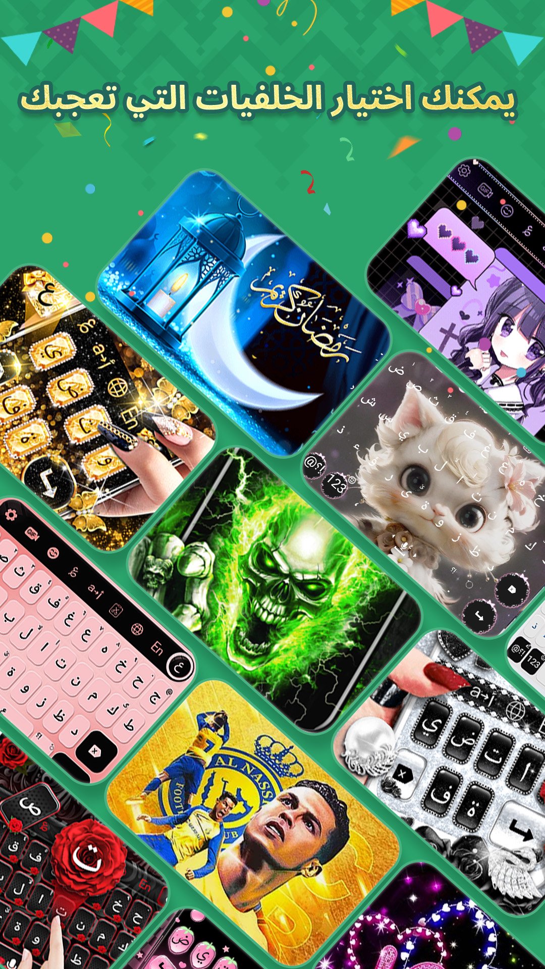 The keyboard includes hundreds of types of backgrounds, the most important of which are "landscapes, fashion, romance, occasions, cute, anime and celebrities...". It also regulates the personal design feature that allows the user to control the shapes and colors of the keyboard buttons, as well as choose his picture 🌇 from the photo gallery on the phone.