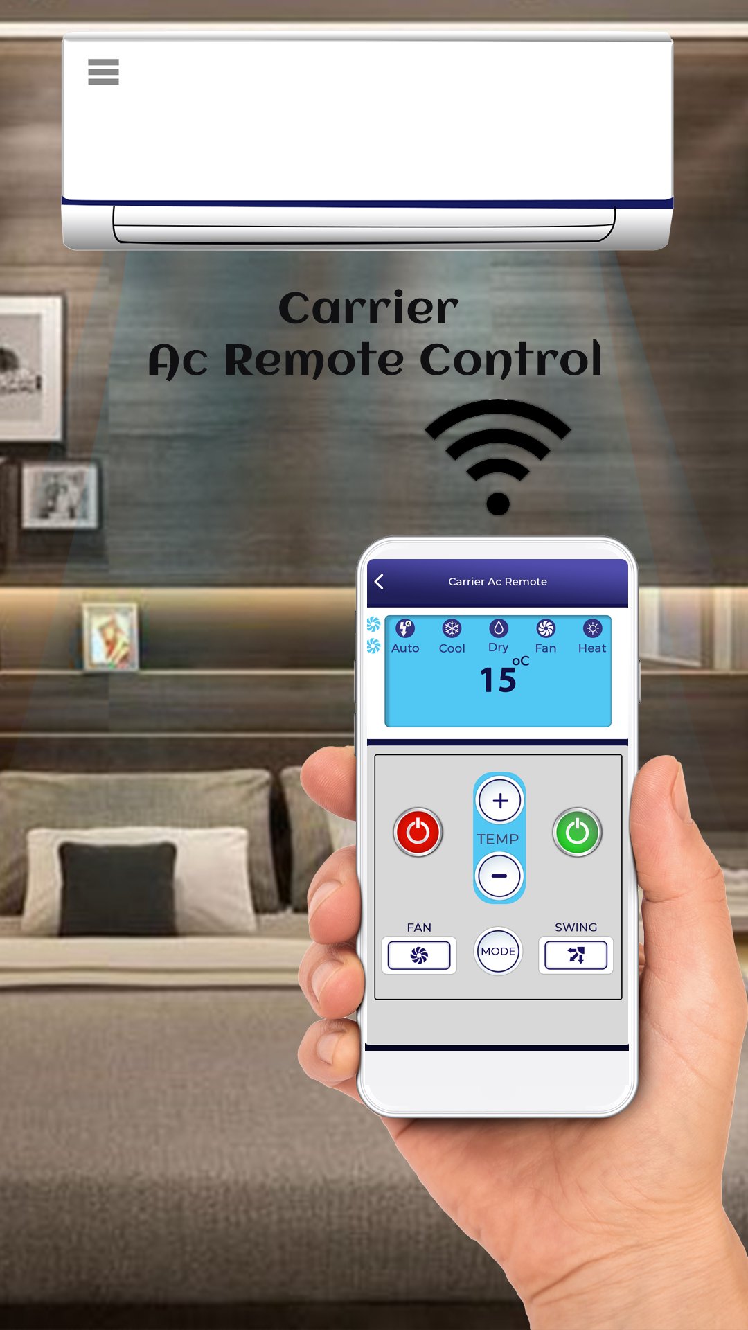 With AC Remote Control For Carrier app you can start to change AC temperature with a mobile without AC Remote Control For Carrier.