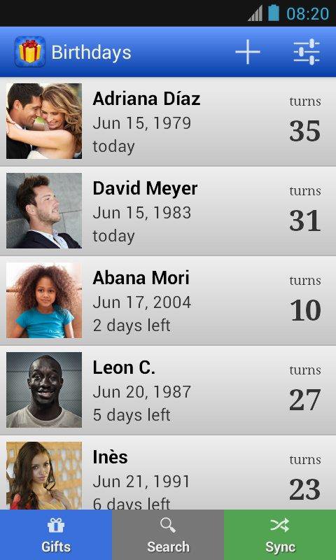 The app automatically calculates your friends’ age, shows their Western and Chinese zodiac signs, and lets you know which day of the week each person’s next birthday is. In addition to that, you will always know exactly how many days are left until each of your friends’ and family’s important dates.