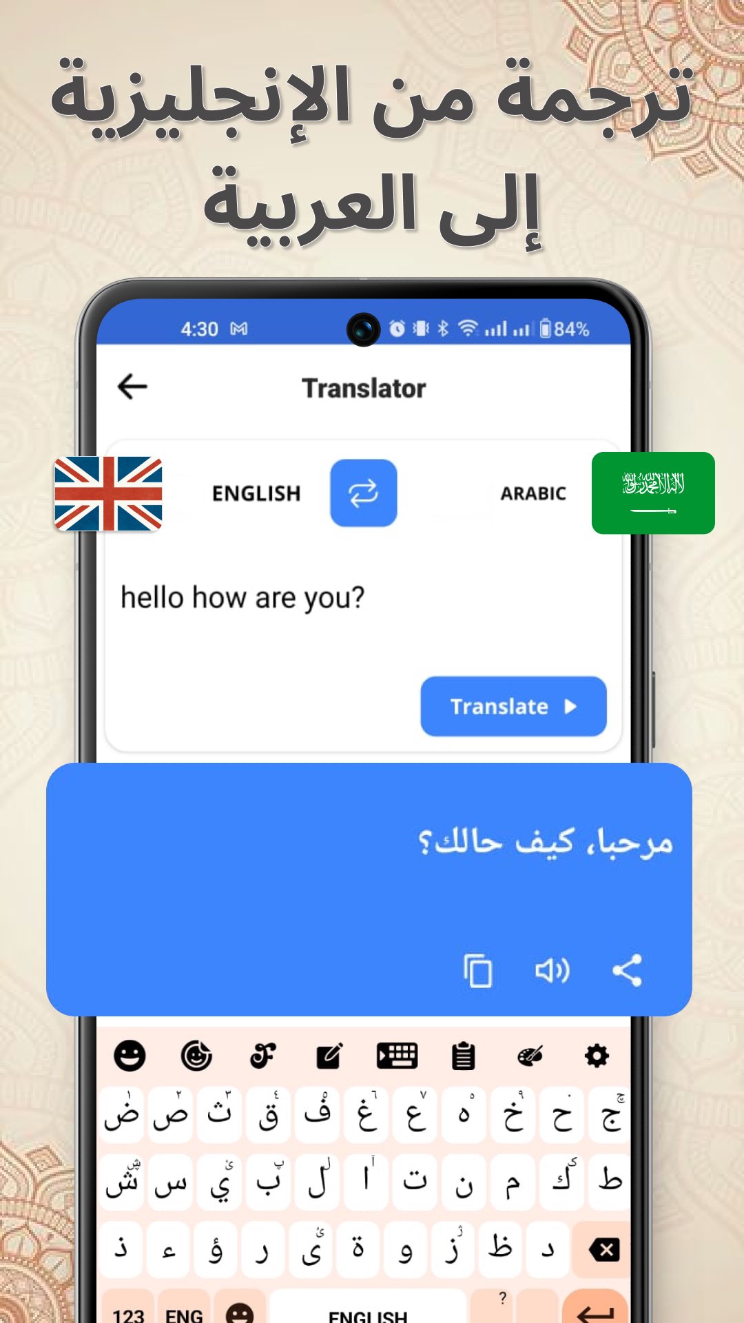 • Arabic English Keyboard – Switch between Arabic and English instantly.