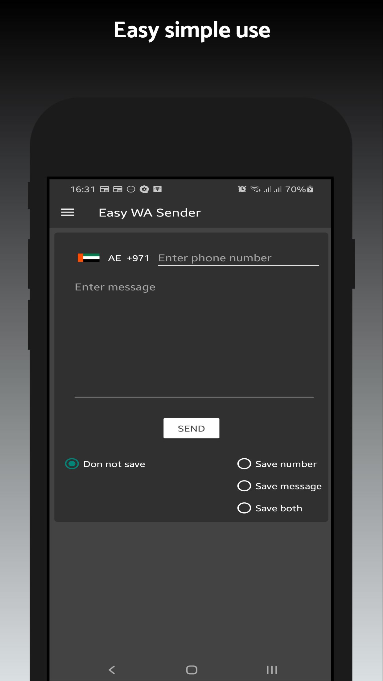 Now you can easily send messages to any phone number without saving it as a contact. With Easy WA Sender, you can start a chat directly using just a phone number.
