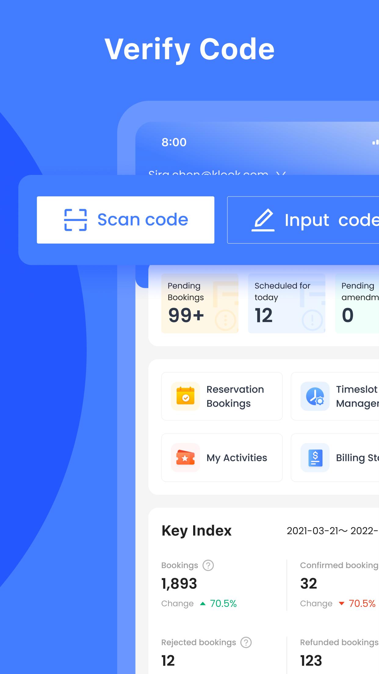 The Klook Partner App works alongside the Klook App (for travelers) to make your bookings management simple, efficient and convenient.