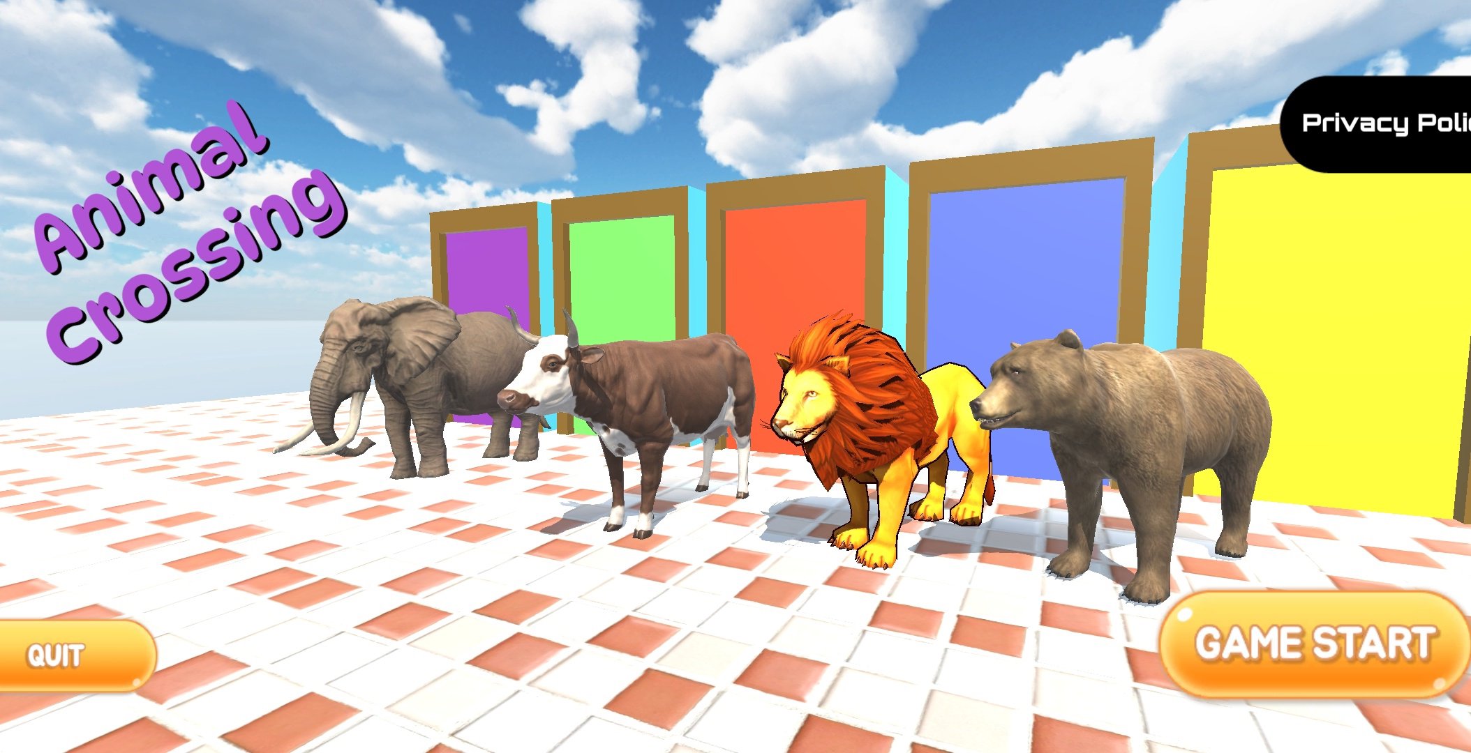 Complete the choose the right door challenge with cow, elephant, lion and Bear. Play Animal crossing game with cow and enjoy. This game is a fountain crossing game in which player have to cross the obstacles and choose the correct fountain. In animal crossing game you will be able to play as cow, elephant, lion or bear. So you have four players to control.