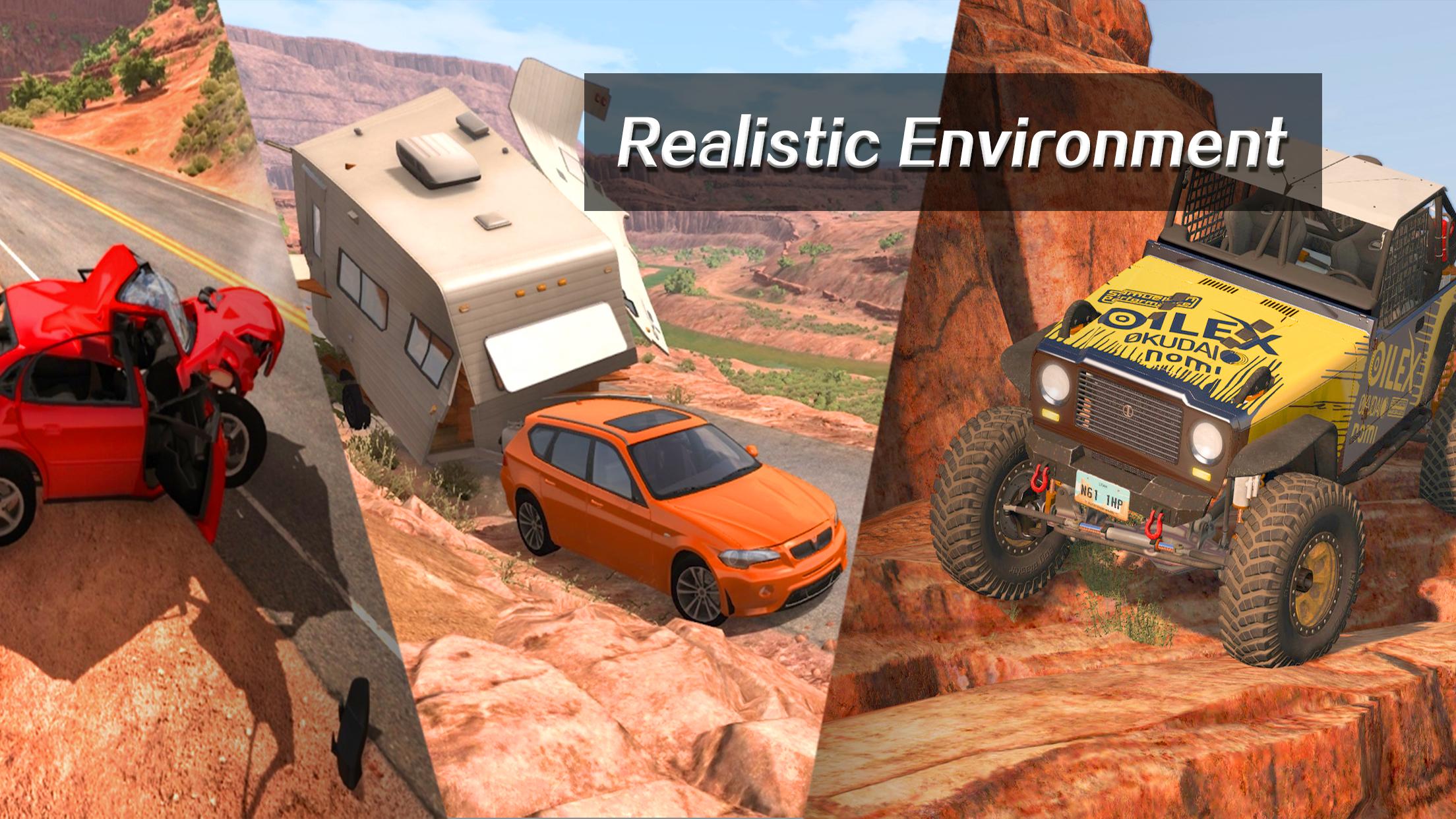"Enjoy Beam Drive: Crash Simulation to feel realistic high speed crash simulator, go down the ramps and crash into the ground, drive different vehicles in the same scene, crash with other cars and survive. Feel like you are playing a crash simulator mode, fast action, demolition derby and car war games.