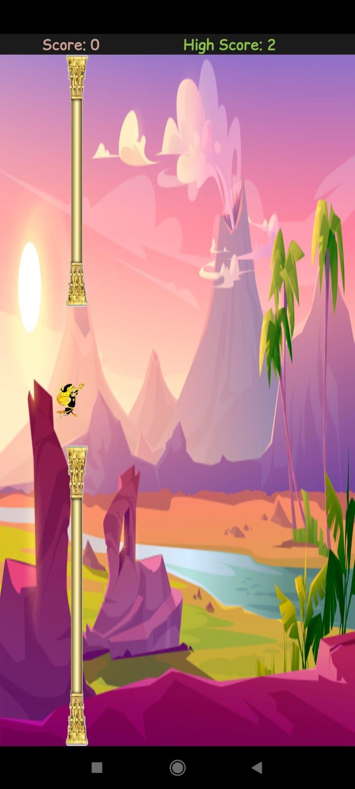 Game Gatotkaca terbang melintasi rintangan setelah kelaur dari kawah gunung