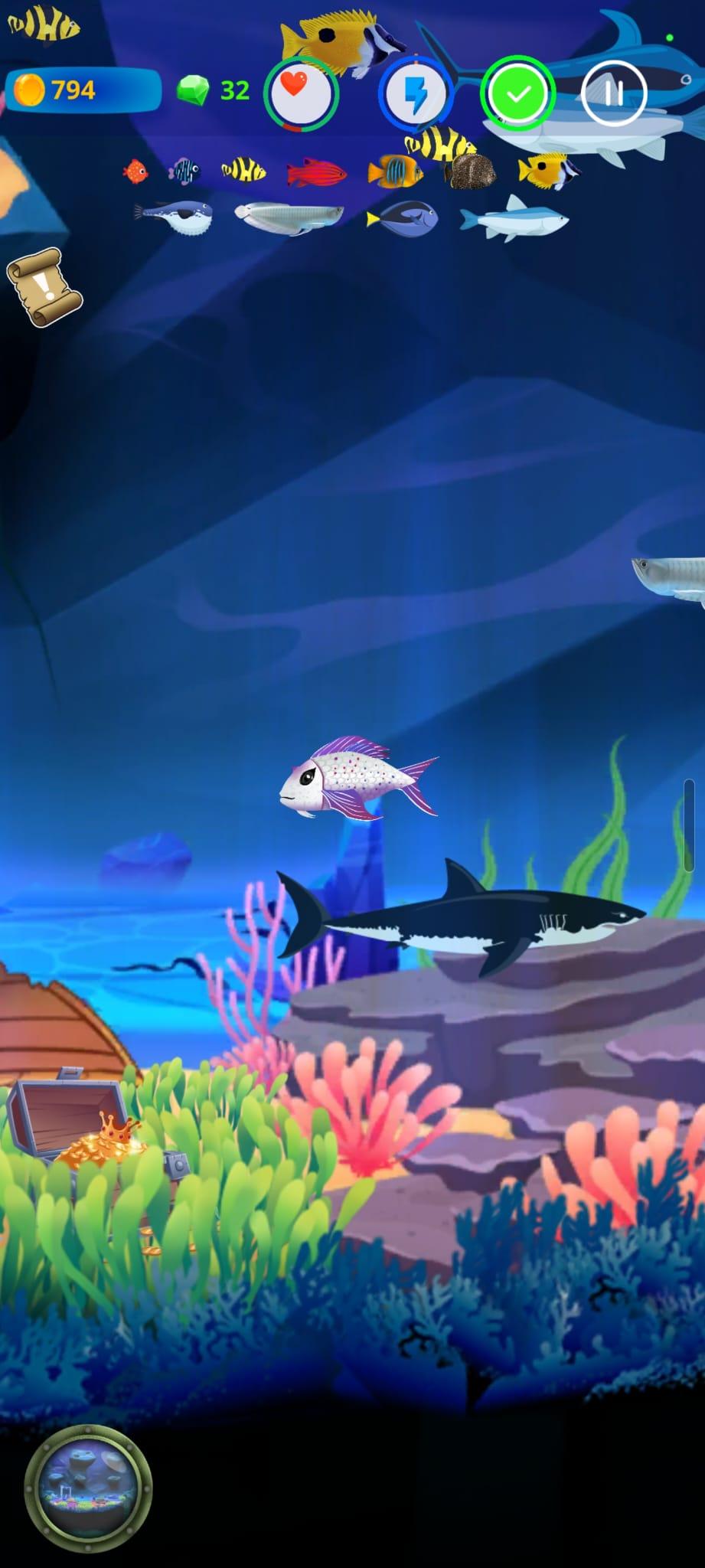 Control a fish on a feeding frenzy and eat all the fish as big as you can eat in many oceans!
