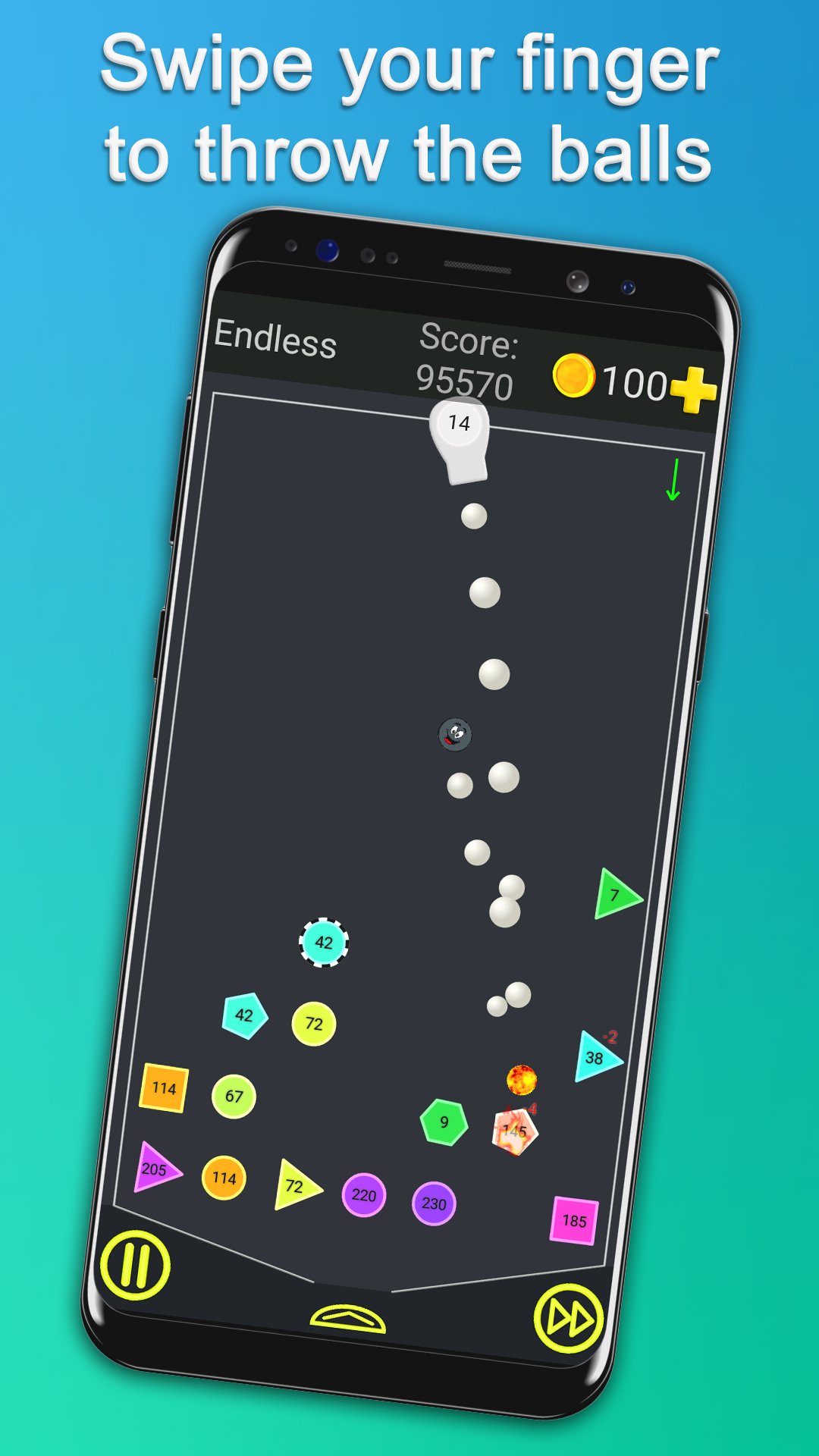 The level of bricks will be increased after each round you throw the balls. Very easy to play but very hard to reach high scores. Don't forget the angle is the key point!