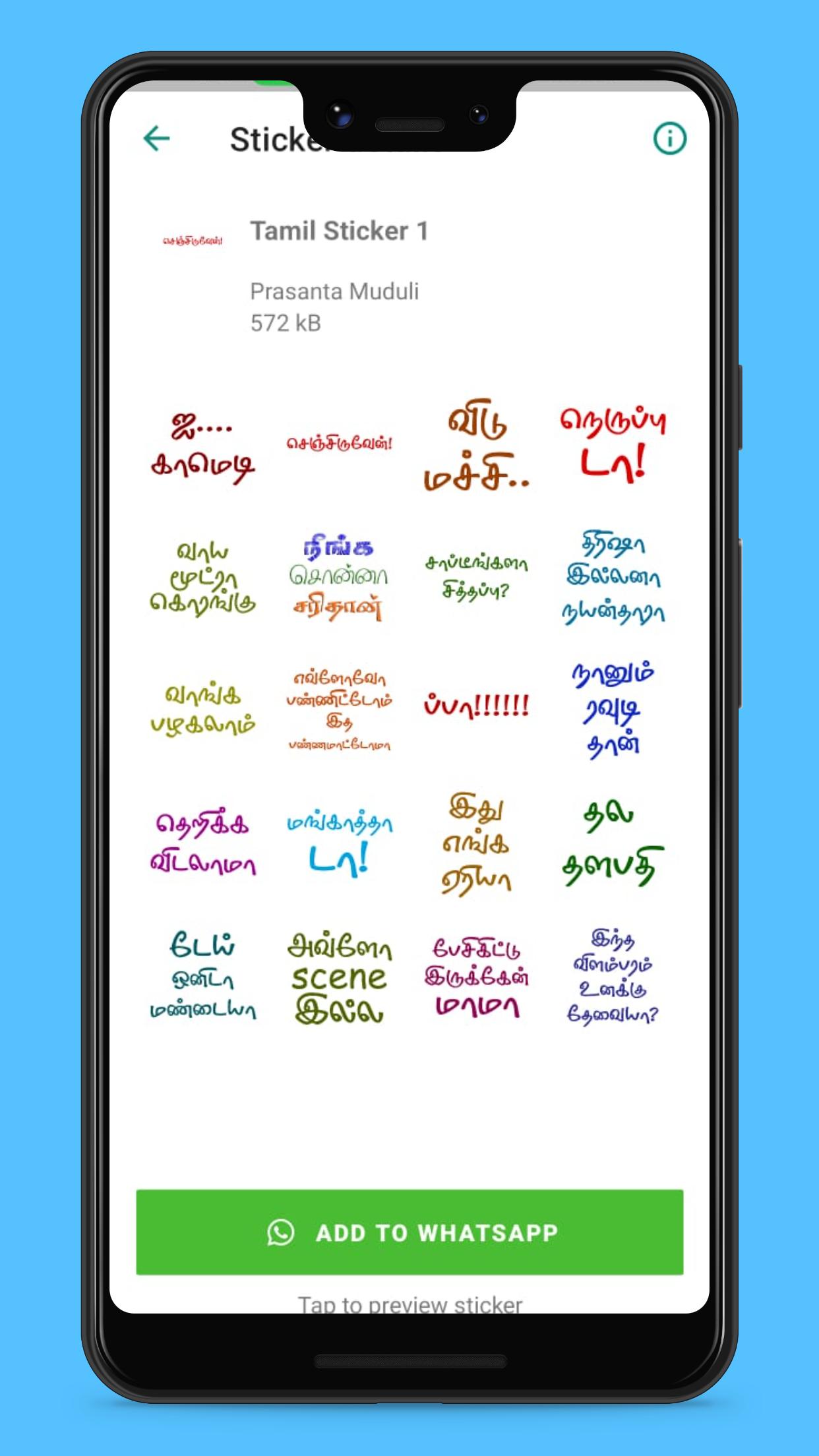 Tamil Sticker is used to Chat with Your Friend ,Tamil Stickers Too Funny and Comedy Chating,Tamil Sticker Have More Tamil stickers with Tamil text so You understand is very easy.