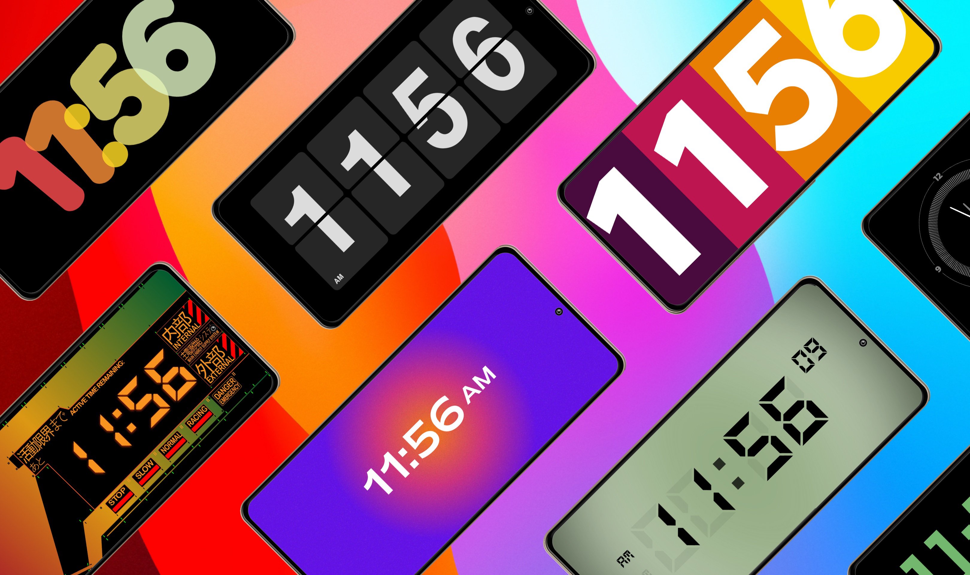 Transform your screen with a variety of fullscreen digital and analog clocks:
