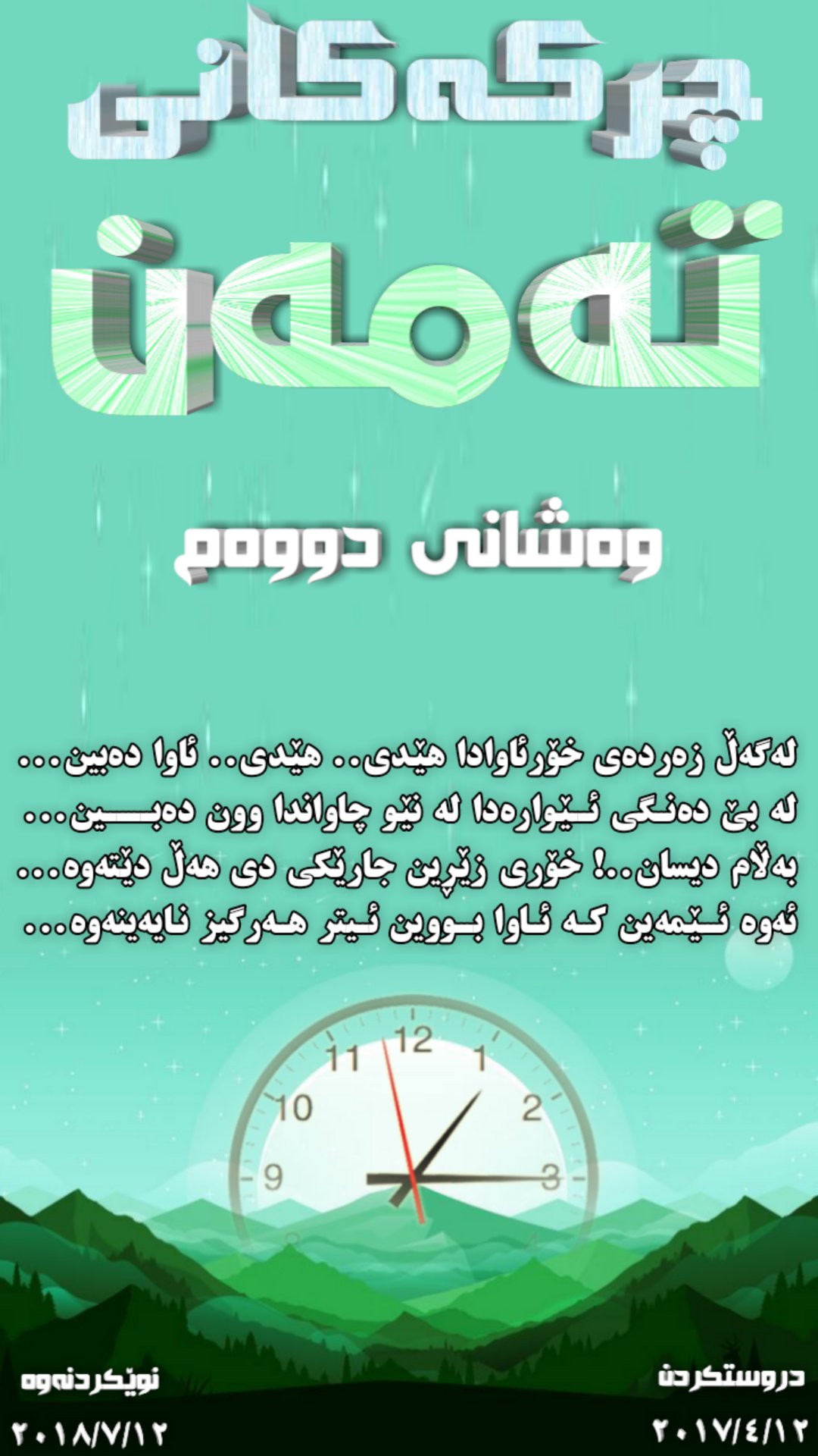 بەرنامەی ( چركەكانی تەمەن ) وەشانی دووەم ، بۆ پیشاندانی ژمارەی ساڵ و مانگ و هەفتە و ڕۆژ و كاتژمێر و خولەك و چركەكانی تەمەنت.