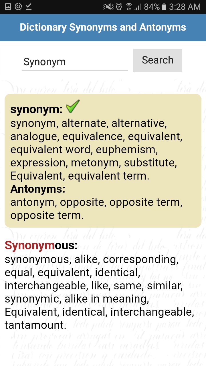This Dictionary of synonyms and antonyms contains more than 70 thousand words, works without being connected to the internet and can use it anytime, anywhere.