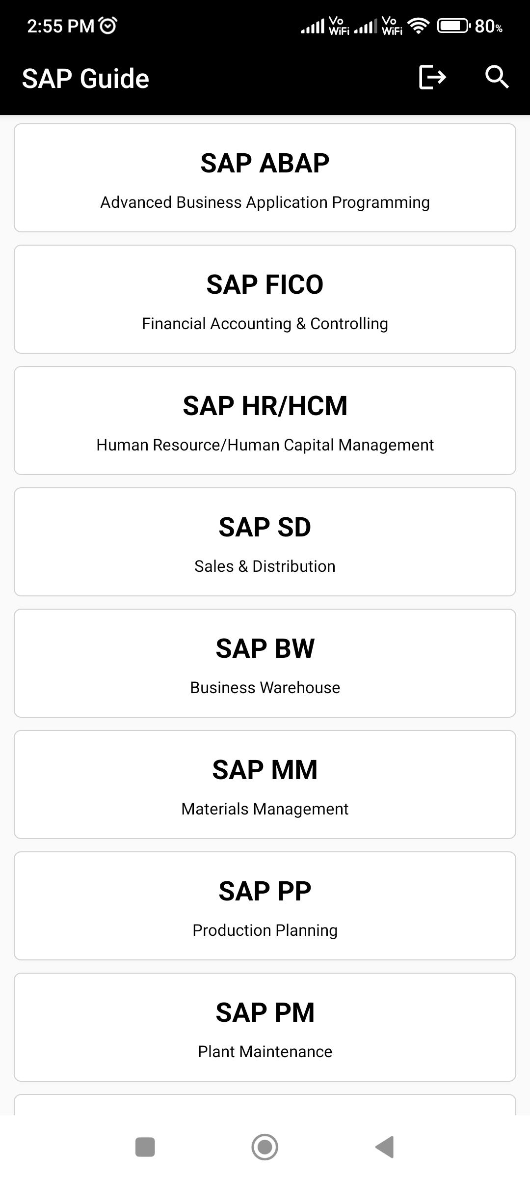 This app is having below materials stored to Learn any of the SAP Modules very quickly which can help you to present your skills in your project work or during interviews.