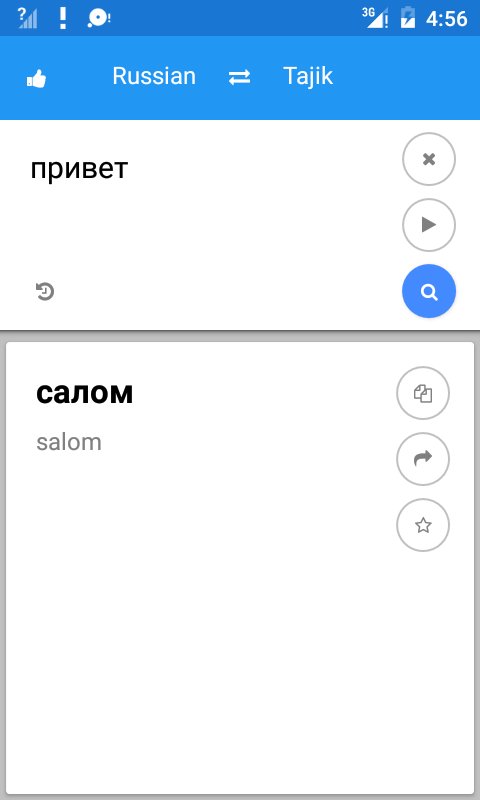 Tajik Russian translate provides translations service between Russian and Tajik. You can translate words and sentences, helps to learn languages.