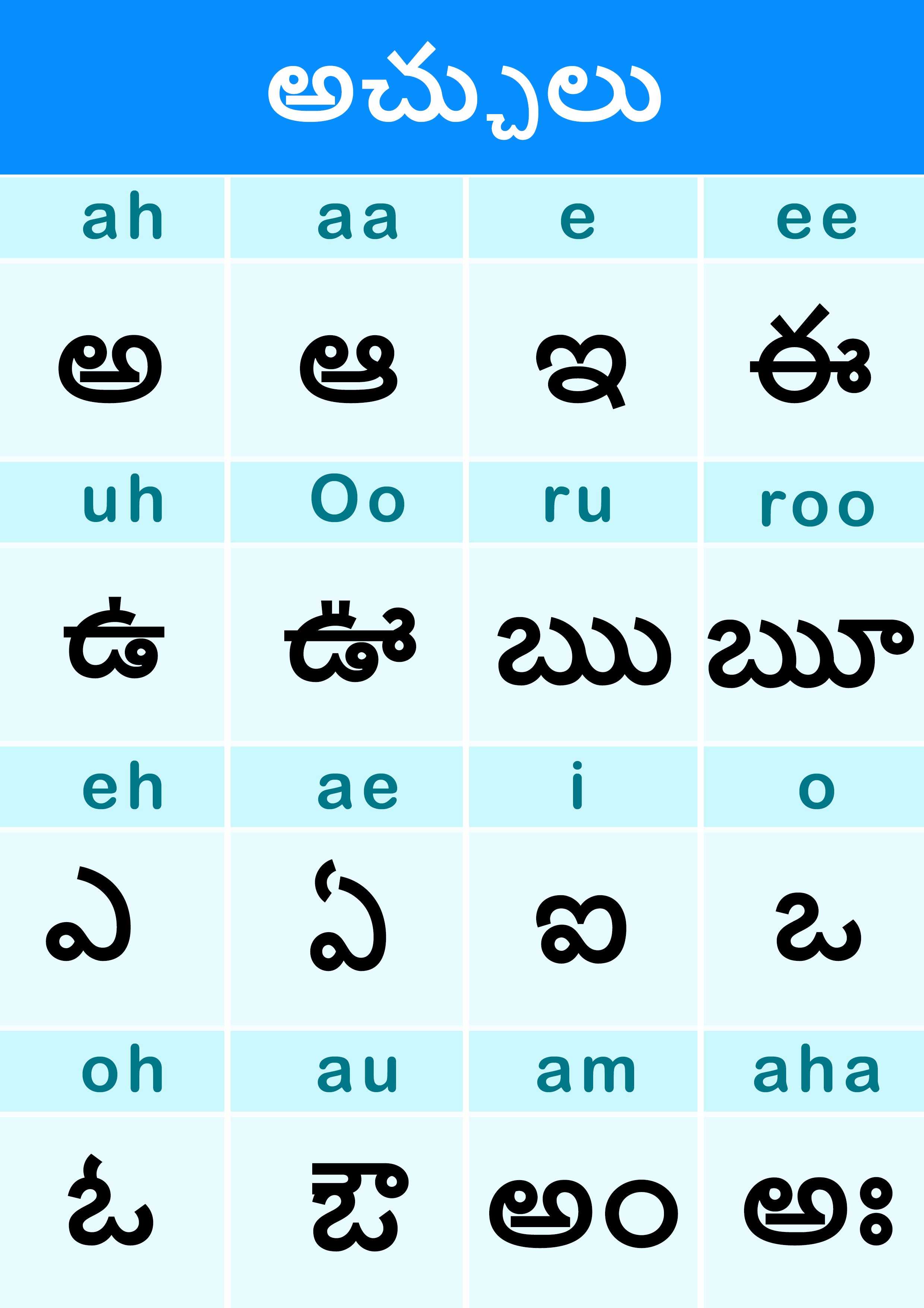 Telugu Language Learning Charts images