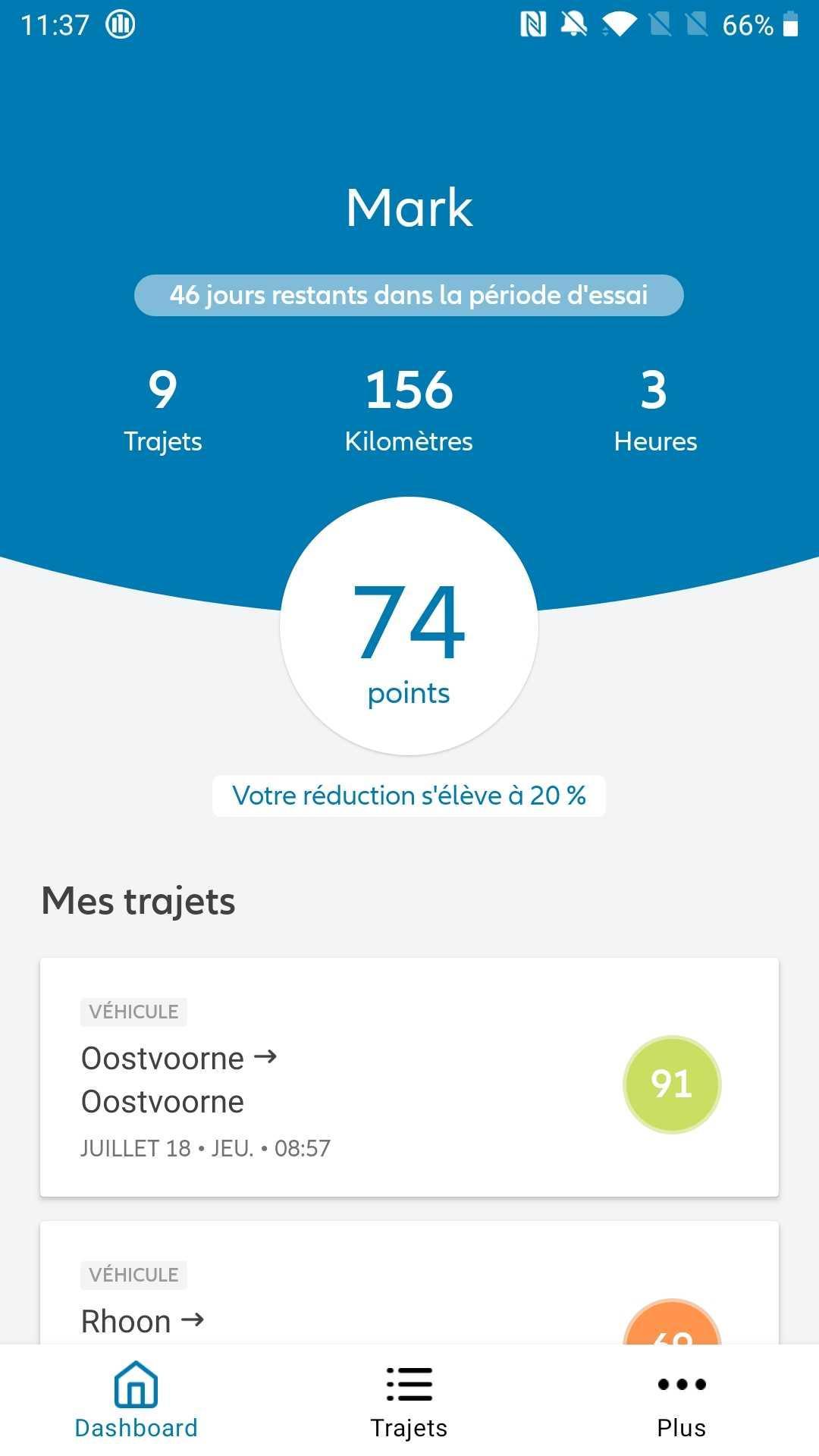 2. À la fin de votre période d’essai (après 2 mois), vous décidez vous-même si le système Allianz Bonus Drive vous convient ou non. L’app vous indique à ce moment votre score final ainsi que la réduction, et ne détectera plus aucun trajet.