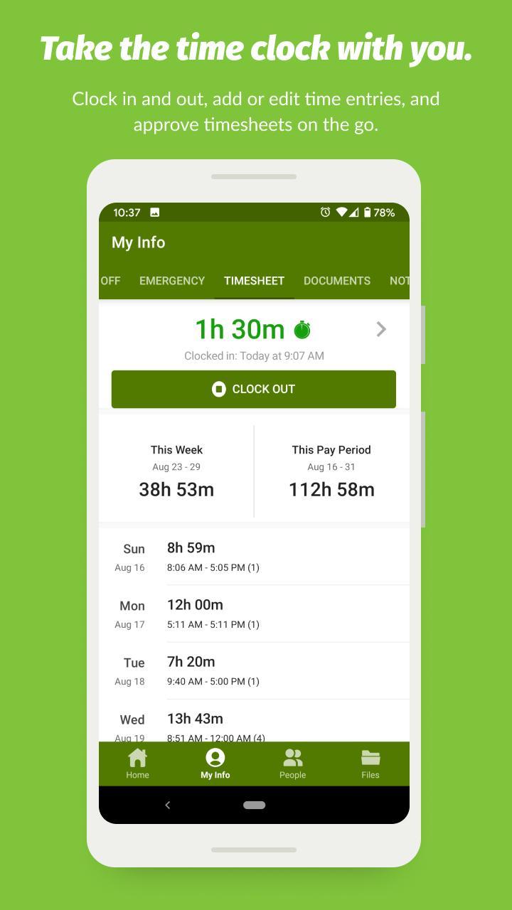 BambooHR is the number one online HR software for small and medium-sized businesses that have outgrown spreadsheets. We automate many of the most tedious HR functions and free you up to do meaningful work. The BambooHR app lets you take some of those most important functions with you, and makes your most common tasks in BambooHR simple and fast.