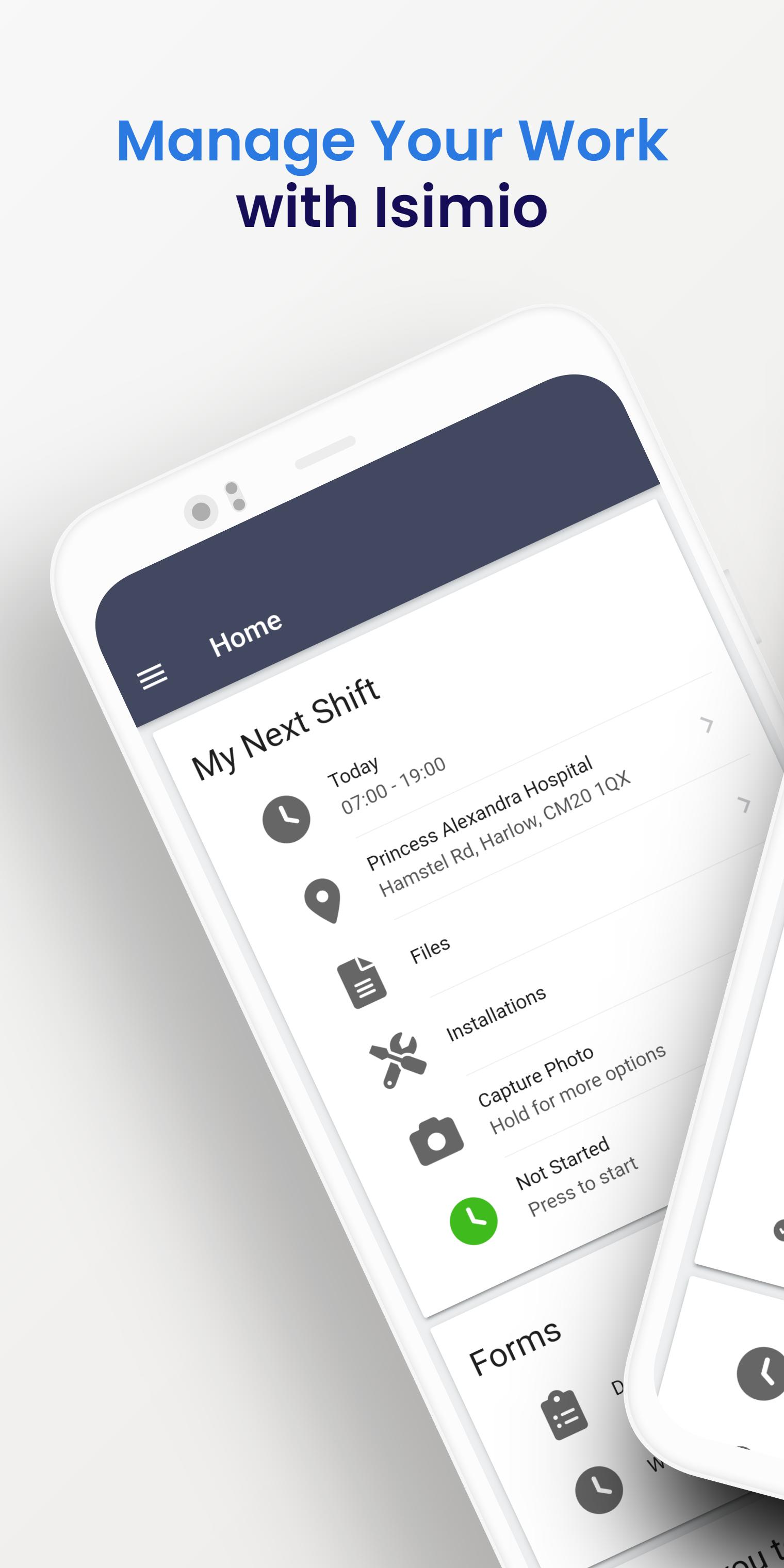 Use Isimio to view and sign in or out of your shifts, or to accept new work offers.