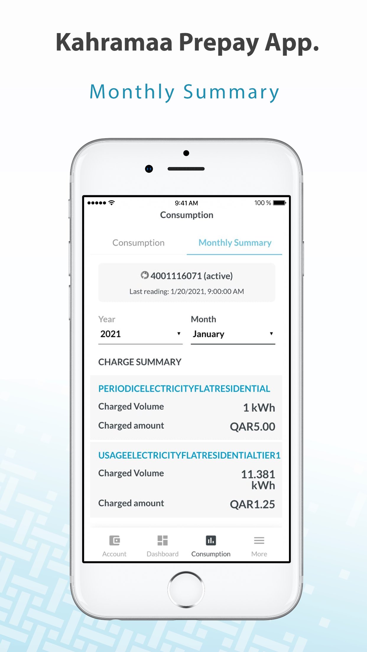 Qatar General Electricity & Water Corporation app to manage Prepaid Account, which provides several services for the customers: