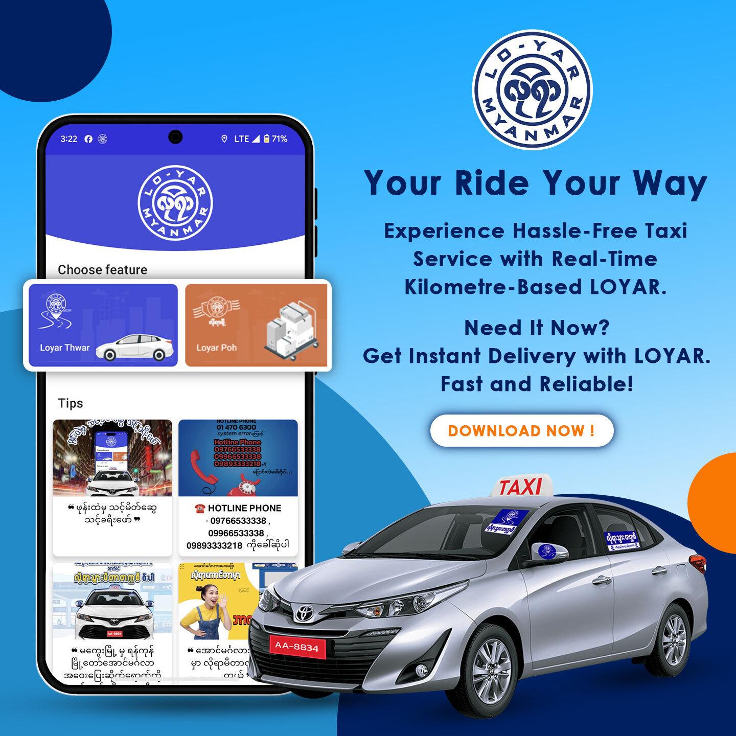 LOYAR Application is ride-hailing services in Myanmar. This application aims to provide a smart tool to facilitate the services provided and improve the communication with drivers and passenger. Our vision is to be a local ride-hailing leader that provides convenient, safe, reasonable price and trust service to our passengers and drivers. Receiving real-time ride requests made easy for driver by using LOYAR Driver. LOYAR driver app has made transportation shown in kilometers based and distance per charges so drivers are no need to calculate transportation charges and easier in a lot of ways. This is the service for those who want to make more earn money. Drivers can get the detailed summary of the trip they last took including the time taken, distance, and a trip map. Drivers can use the Google Maps-powered navigation feature in the best taxi dispatch app between Pickup and Drop location and ETA information. Drivers can track their daily trips earnings and can make more earn money.