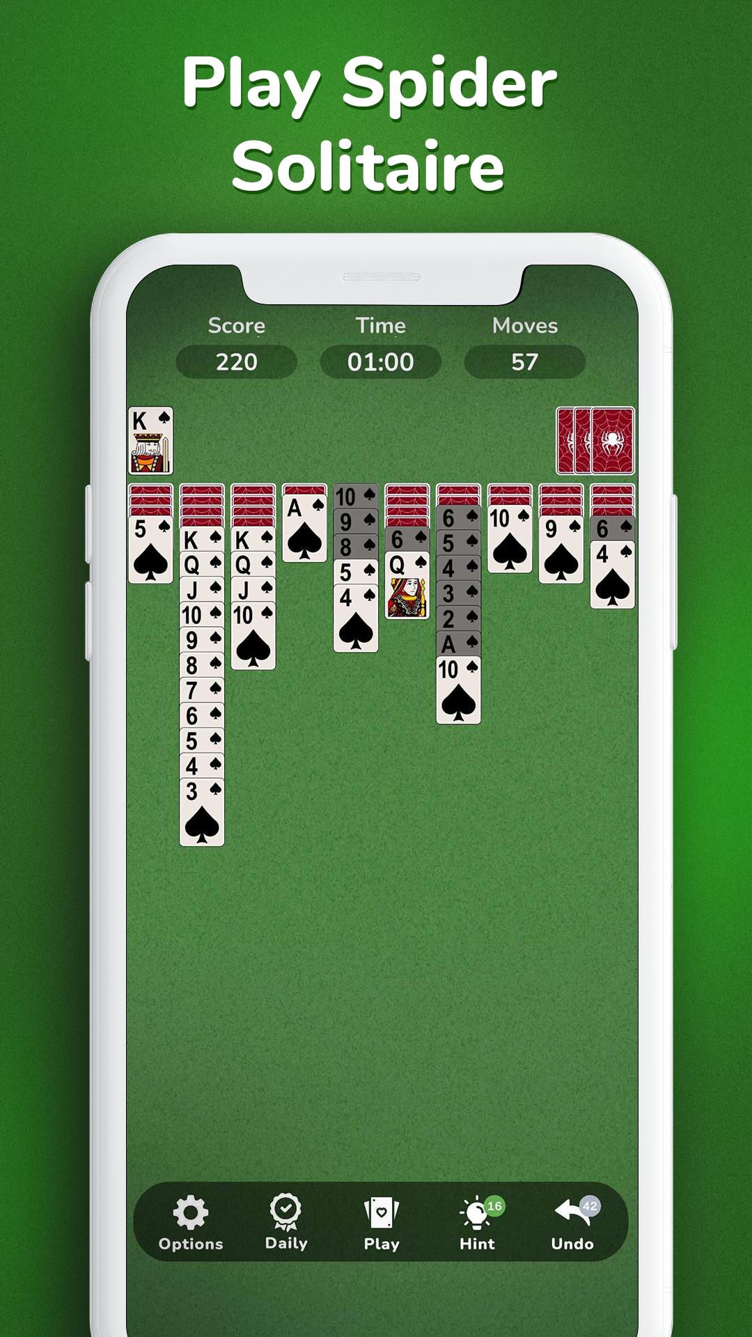 This version of Spider Solitaire is the most interesting, artistic, and user-friendly you've ever played. It offers daily challenges and goals that you can complete to earn trophies and keep your brain sharp. The more puzzles you solve, the more trophies you earn.