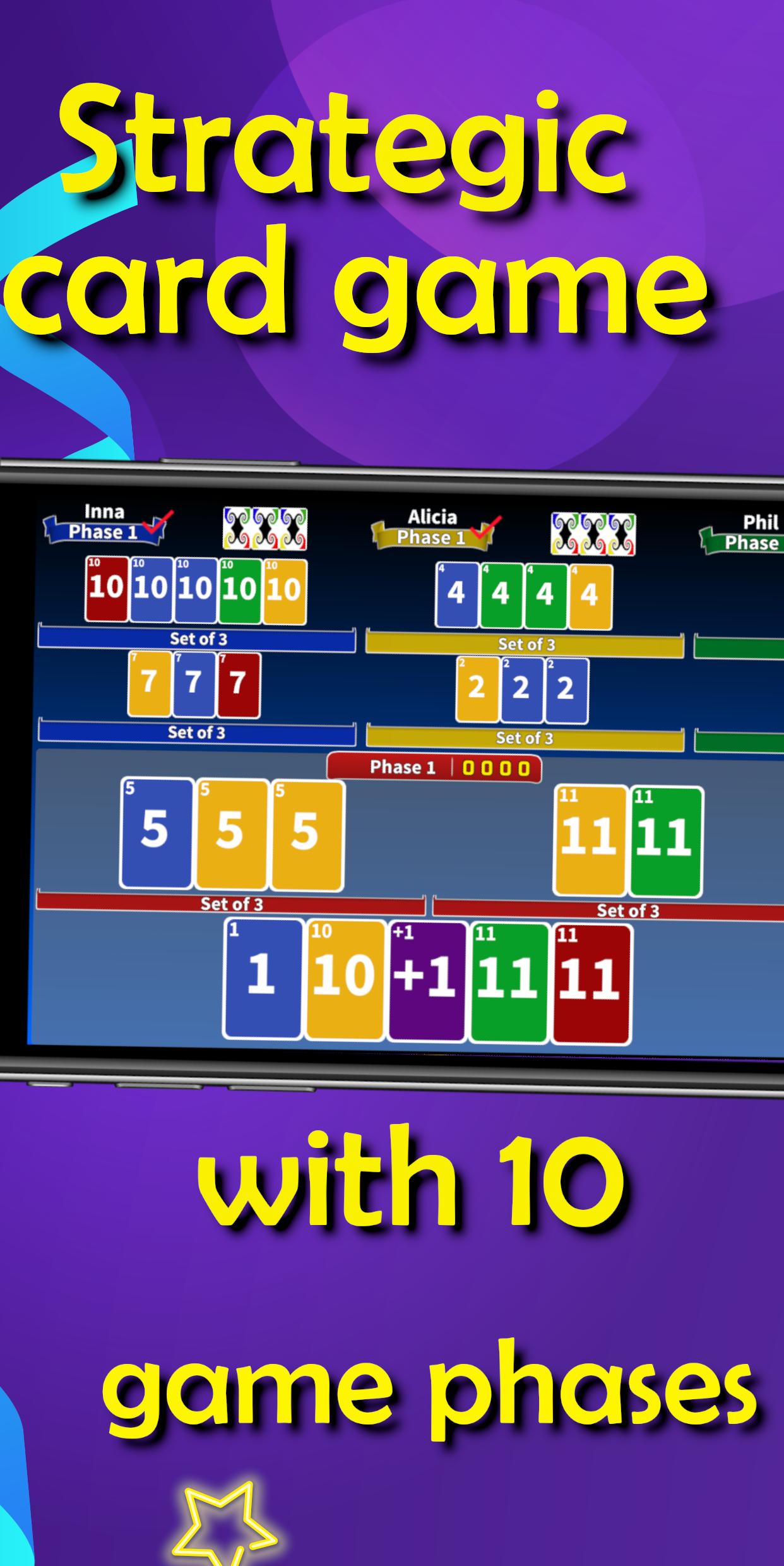 The objective of the game is to be the first player to complete all 10 game phases with defined card sets. The rules are easy to learn and suitable for all ages.