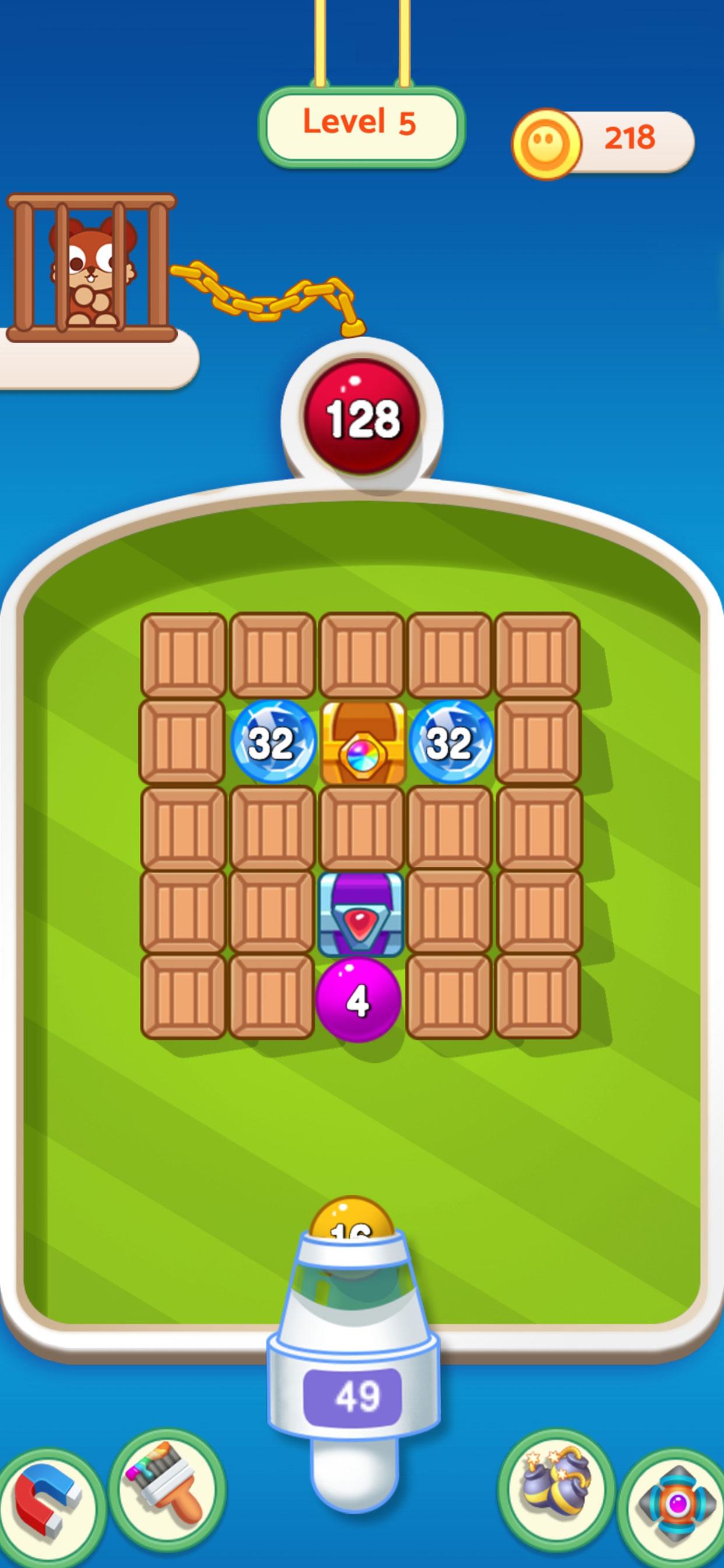 Merge the numbers and clear the barriers and bubbles on the board, save the animal.