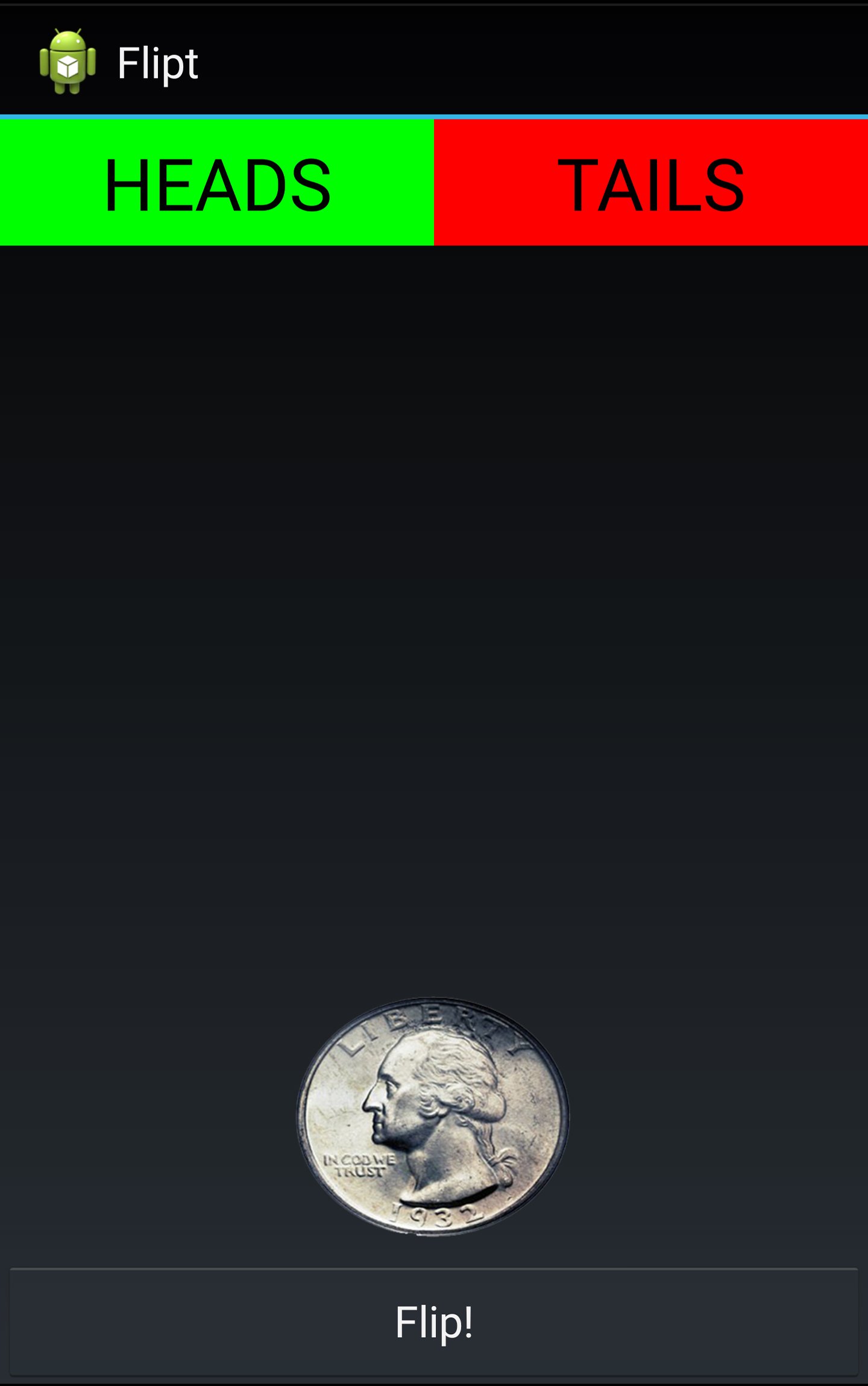 Meet flipt. A simple app with limitless potential. Alter the outcome of the coin flip by clicking the top left (for heads) or the top right (for tails) of the screen before you flip the coin. These buttons are hidden, only you know where they are! Never lose a coin flip again!