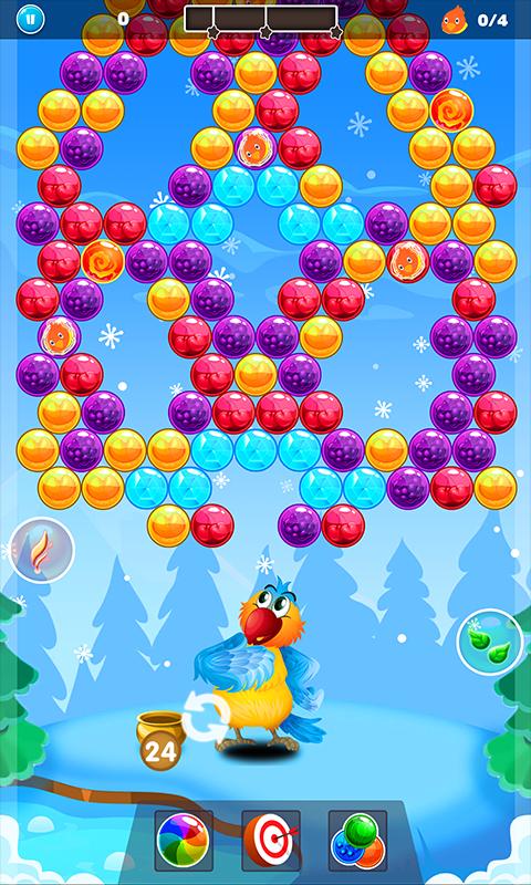 Match the same colors bubbles, bubbles pop and it will release the parrots chicks. This bubbles game has some powers up too, don’t forget to use them along the way. Complete all the game levels and show off with your friends and family too. This bubble pop game is an amazing way to relax in free time. Also this is totally free bubble pop.
