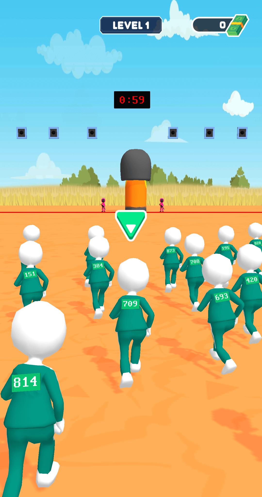 Controls are kept very simple in this game, if you tap on the screen the player will start moving in the red light green light game. Tap and hold as long as you want the player to keep running but when the squid game doll looks at you, you better stop.