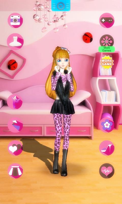 Talking Sweet Girl repeats everything you say with a funny voice. Enjoy the girl to bring you the laughter and happiness! Help talking sweet girl become a fashion urban beauty. Make her your own superstar!