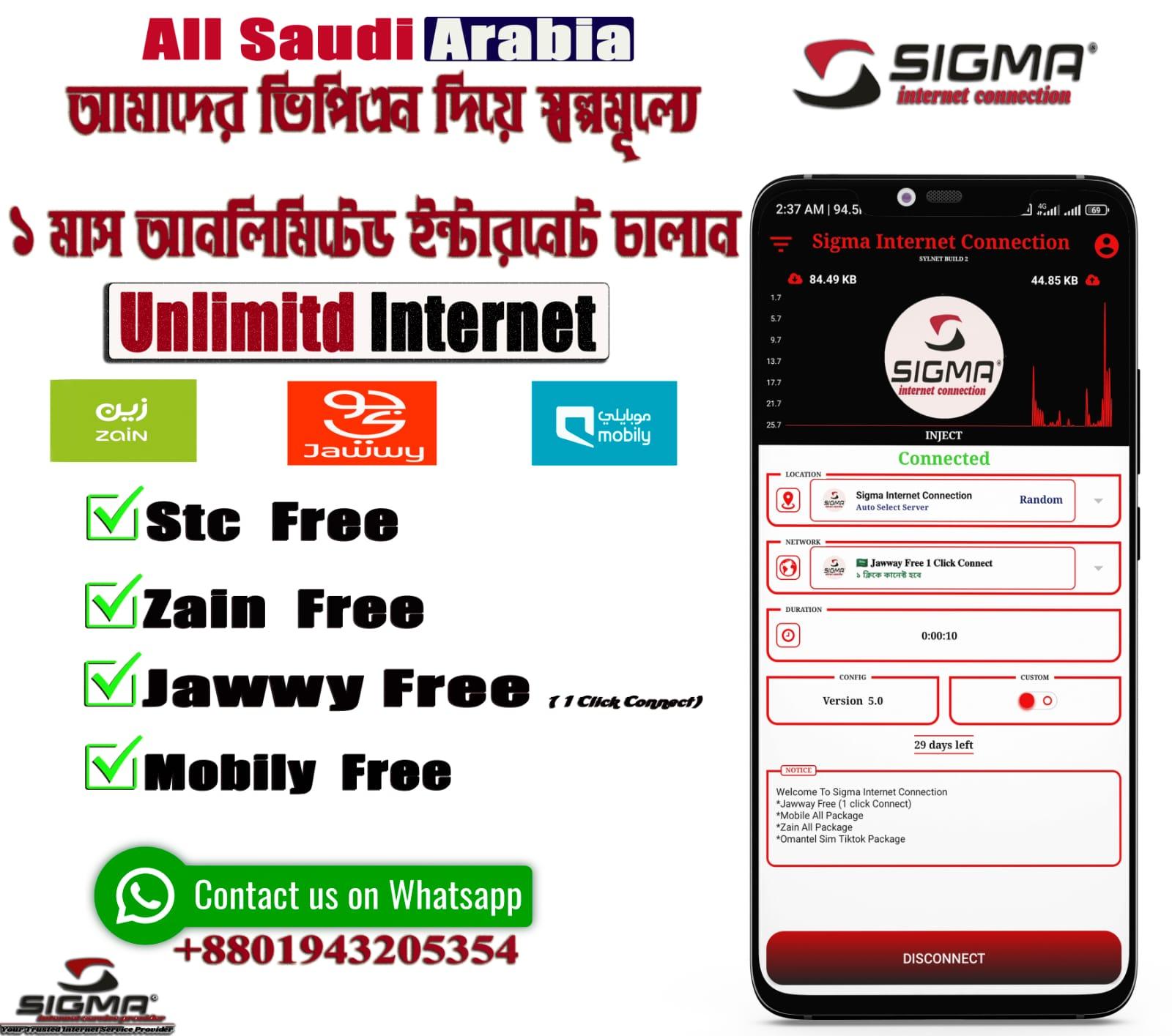Hi Sigma Internet Connection All Device Support and Good Working All Time.