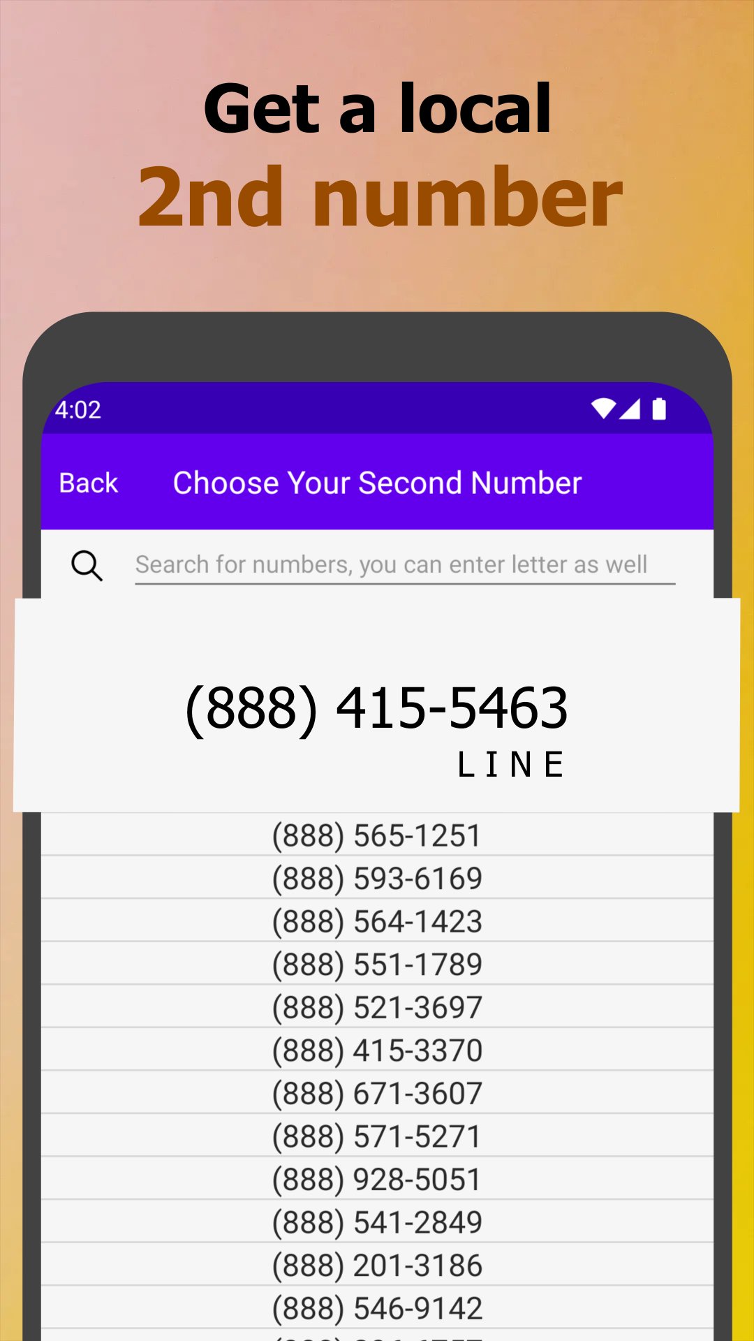 Get a second phone number for many personal usages such as: