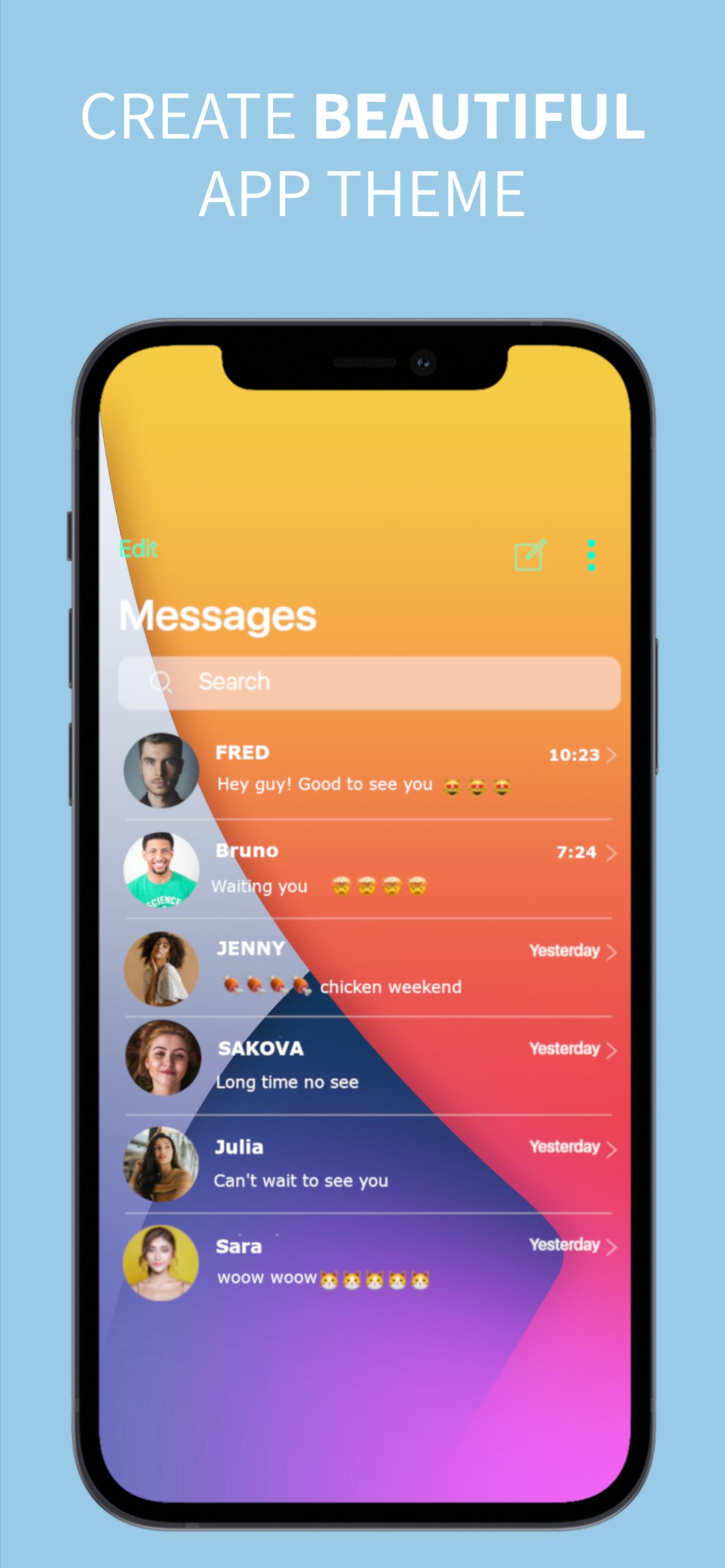 With iCenter OS - Messages OS - iBubble Messages, you can custom your conversation with many feature: themes, bubble, fonts, emoji.