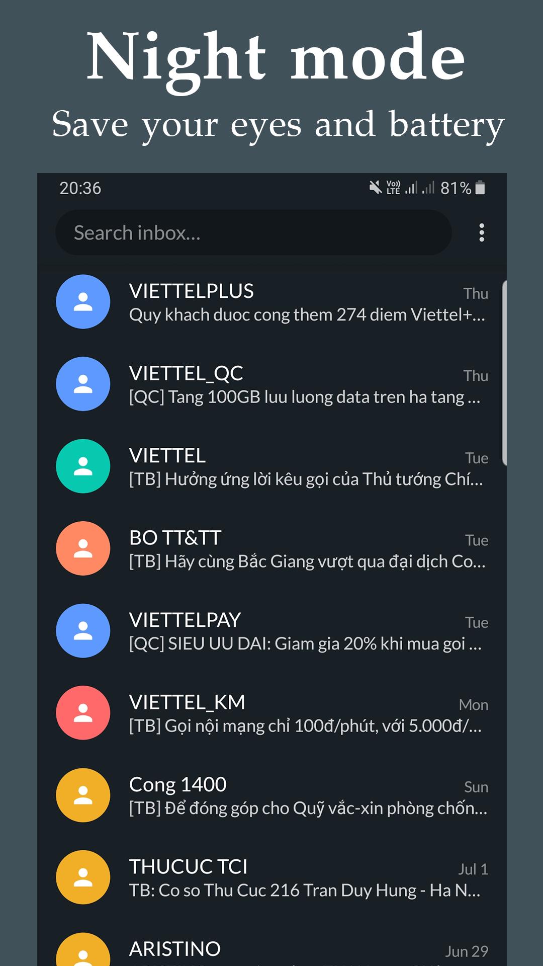 + Fully supports dual sim devices for Android 5.0 and above for both SMS and MMS