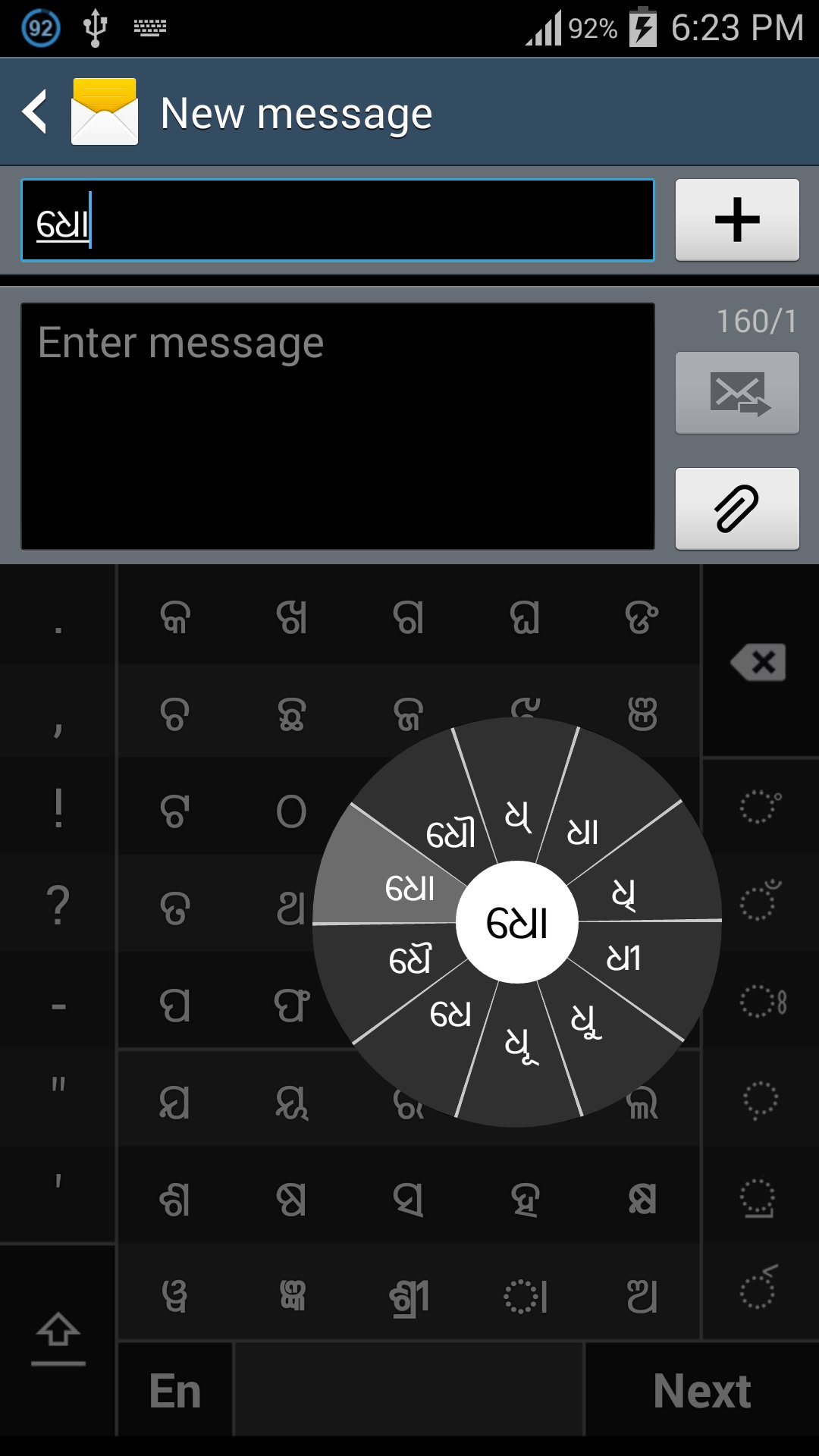 Typing conjuncts like କ୍ରି, ସ୍ଥ, ଚ୍ୟ is particularly hard for most people. Swarachakra makes it easy. First tap on the first part of the combination and select the halant from the chakra (କ + ୍). Swarachakra then shows a preview of all possible conjuncts that begin with that consonant (ସ + ୍ + ତ = ସ୍ତ; ସ + ् + ଥ = ସ୍ଥ...). If you need to add a matra, select it from the new chakra like earlier (ସ୍ଥା, ସ୍ଥି, ସ୍ଥୀ, ସ୍ଥୁ, ସ୍ଥୂ...).