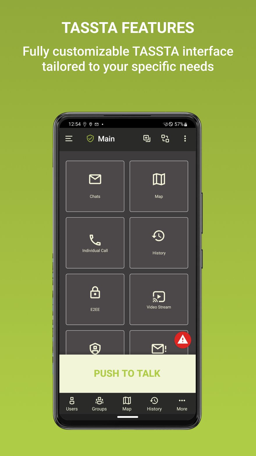 This app is the client-side component of the TASSTA framework. TASSTA provides mission critical push-to-talk (MC-PTT) capabilities in LTE networks over the Internet Protocol (IP) and builds a comprehensive communications and emergency response solution on that foundation. The following are some highlights of the TASSTA features that T.Flex implements.