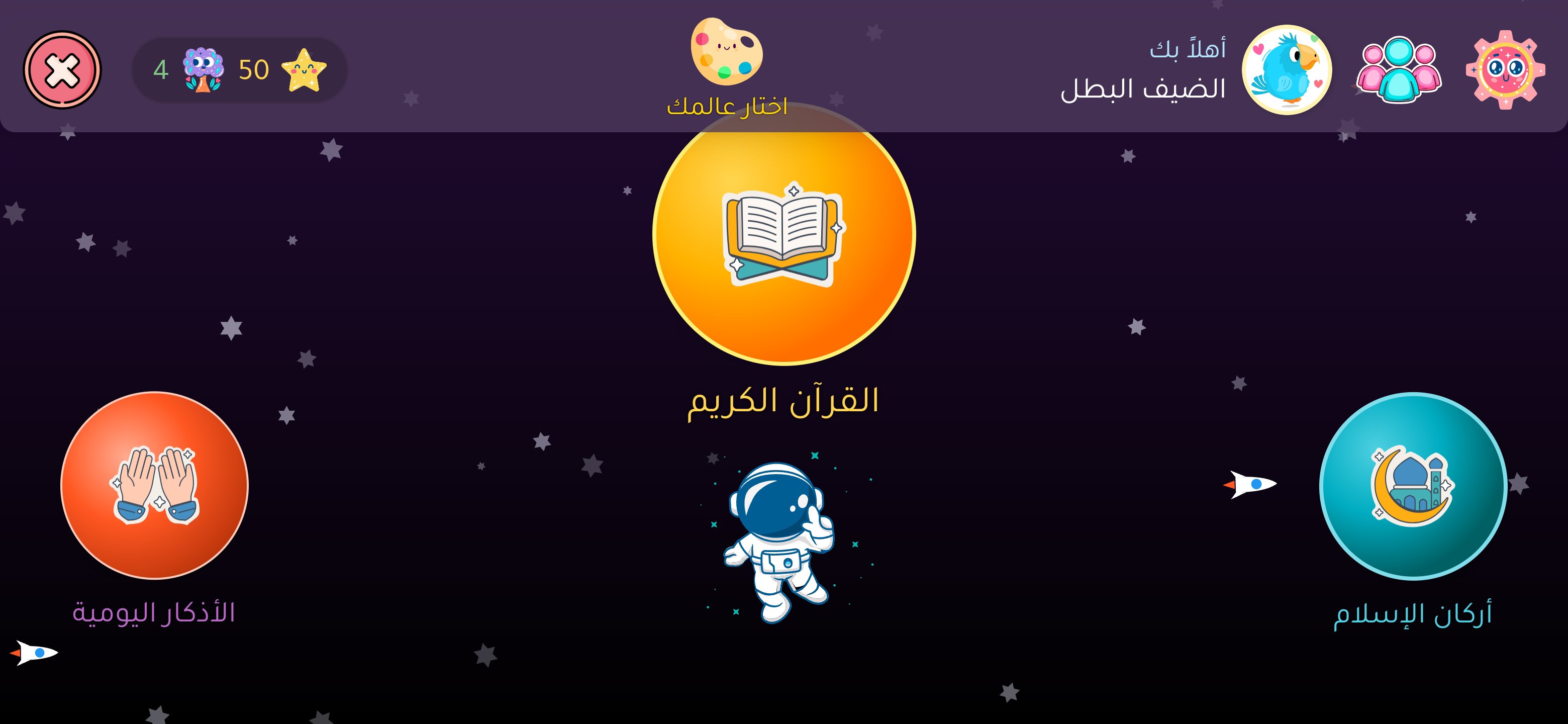 We've carefully designed this app to be child-friendly, combining a beautiful cartoon design with ease of use and in-depth educational content. With Little Astronaut, your child will embark on a journey across the planets, collecting stars and learning verses from different parts of the Quran, such as Juz' Amma and Juz' Tabarak.