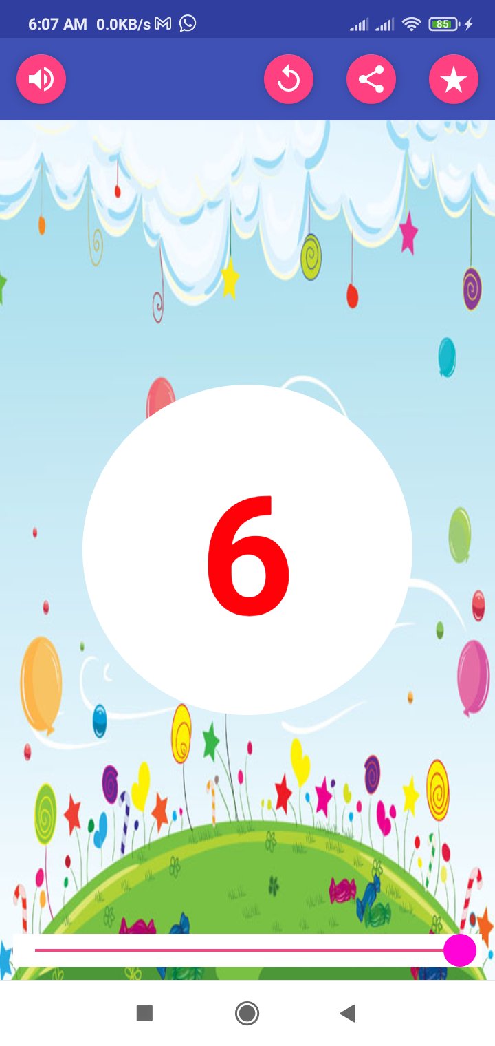 The app provides audio support, as each number is pronounced through the speaker. This auditory reinforcement aids in better retention and comprehension for young learners.