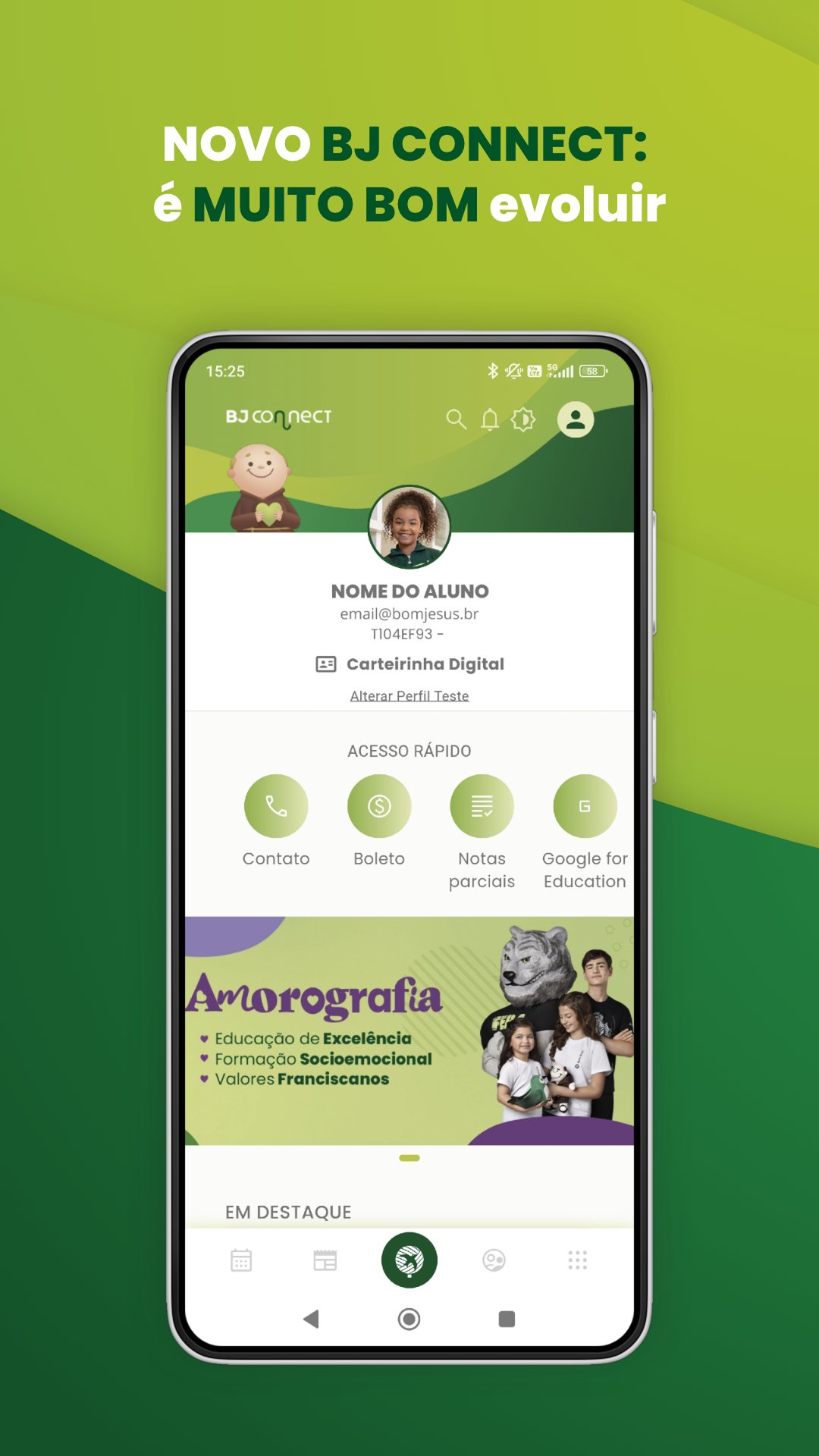 Este é o novo BJ Connect! O aplicativo foi reconstruído em uma plataforma de tecnologia moderna que permitirá maior flexibilidade e compatibilidade com novos recursos digitais ao longo do tempo, ampliando e muito a vida útil da ferramenta. É muito BOM evoluir!