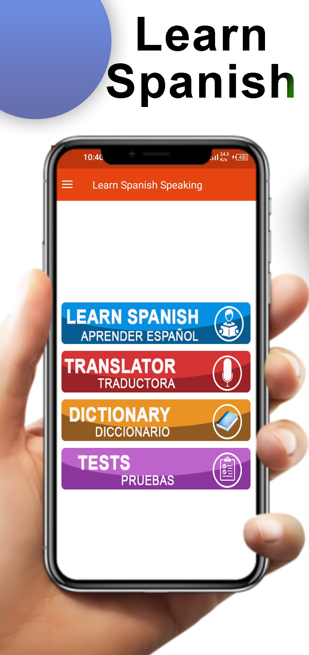 After extensive research we have added different topics of daily Spanish lessons and communications through which you can learn how to have a decent conversation in Spanish language. Our app is covering topics relating to greetings, general Spanish conversations, How to use numbers in Spanish language, how to ask for time and date, how to ask for directions and places, how to communicate while in transport, how to ask about accommodation, how to communicate while eating out, what to ask while shopping, Different colors in Spanish language, Regions and towns, Name of Countries in Spanish language, Tourist attractions, How to ask about family members, what to say while dating, how to communicate in emergency in Spanish language. What to say while you are sick, Spanish Language tongue twisters, Occasions phrases in Spanish, how to call different body parts. We are teaching you all the different aspects and communications and conversations of Spanish Language. All the conversations have native Spanish pronunciations. With which you can learn how to pronounce different words and phrases in Spanish language. Spanish pronunciation skills are very important in learning Spanish language. Study Spanish with our easy to use application. The easiest way to learn Spanish language is to practice daily. Take free Spanish lessons online and become a pro in few days.
