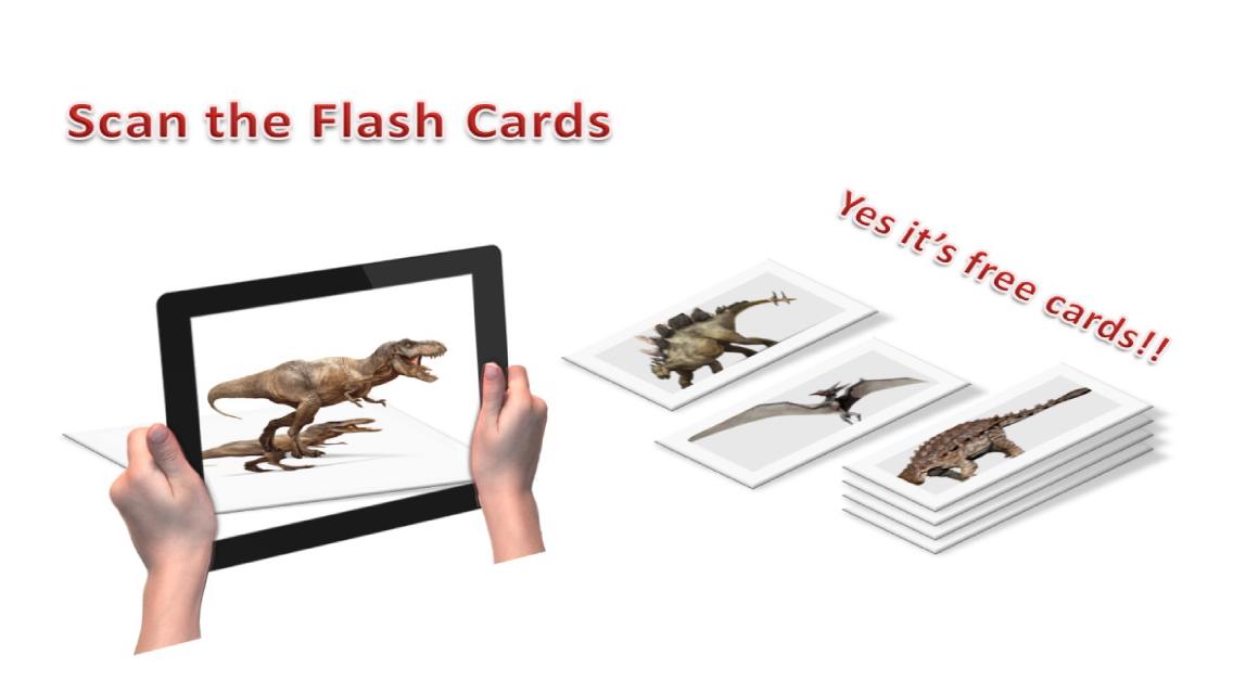 Dinosaur Life 4D is Augmented Reality (is an interactive experience of a real-world environment whose elements are "augmented" by computer-generated perceptual information) app for description of dinosaurs, is available on Google Play for free without any cards pre-purchased just download your free card, print it, scan it and enjoy.