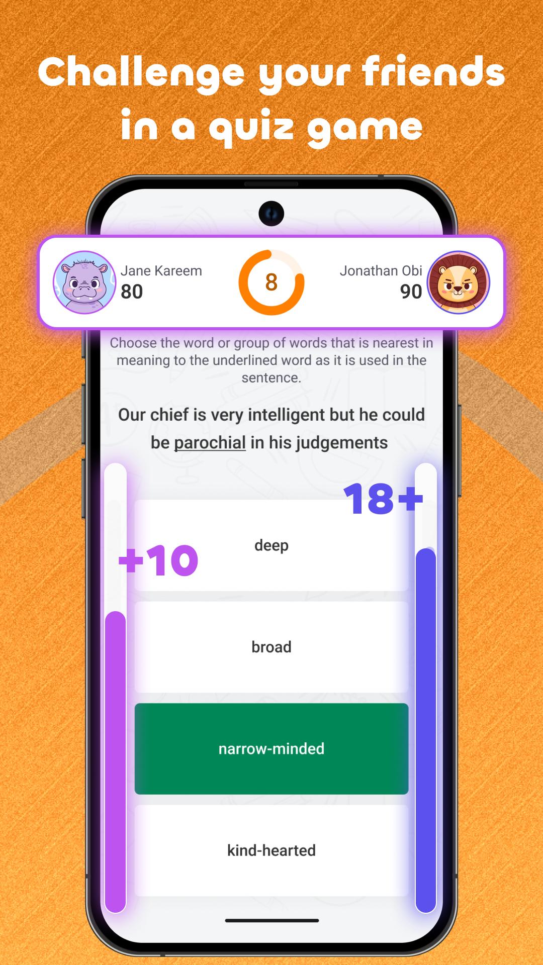 2. Challenge Your Friends Quiz Game: Challenge Your Friends Quiz Game: Battle your friends with quizzes based on WAEC and JAMB CBT past questions. Answer fast to earn points and see who wins!