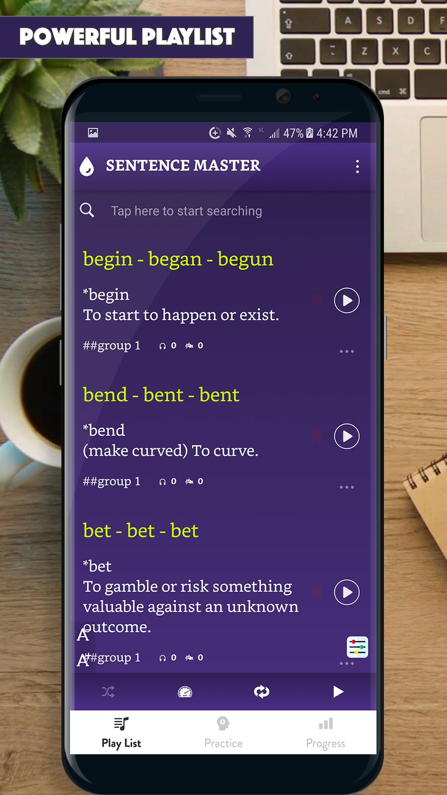 English is the most widely spoken as a second language. You can use it in formal situations: in business, education, traveling, shopping, medicine as well as in informal ones like communication with company of friends etc. This learning English app helps you to pick up and practice the most essential vocabulary of English irregular verbs for using them in different conversations in English like native speakers do.