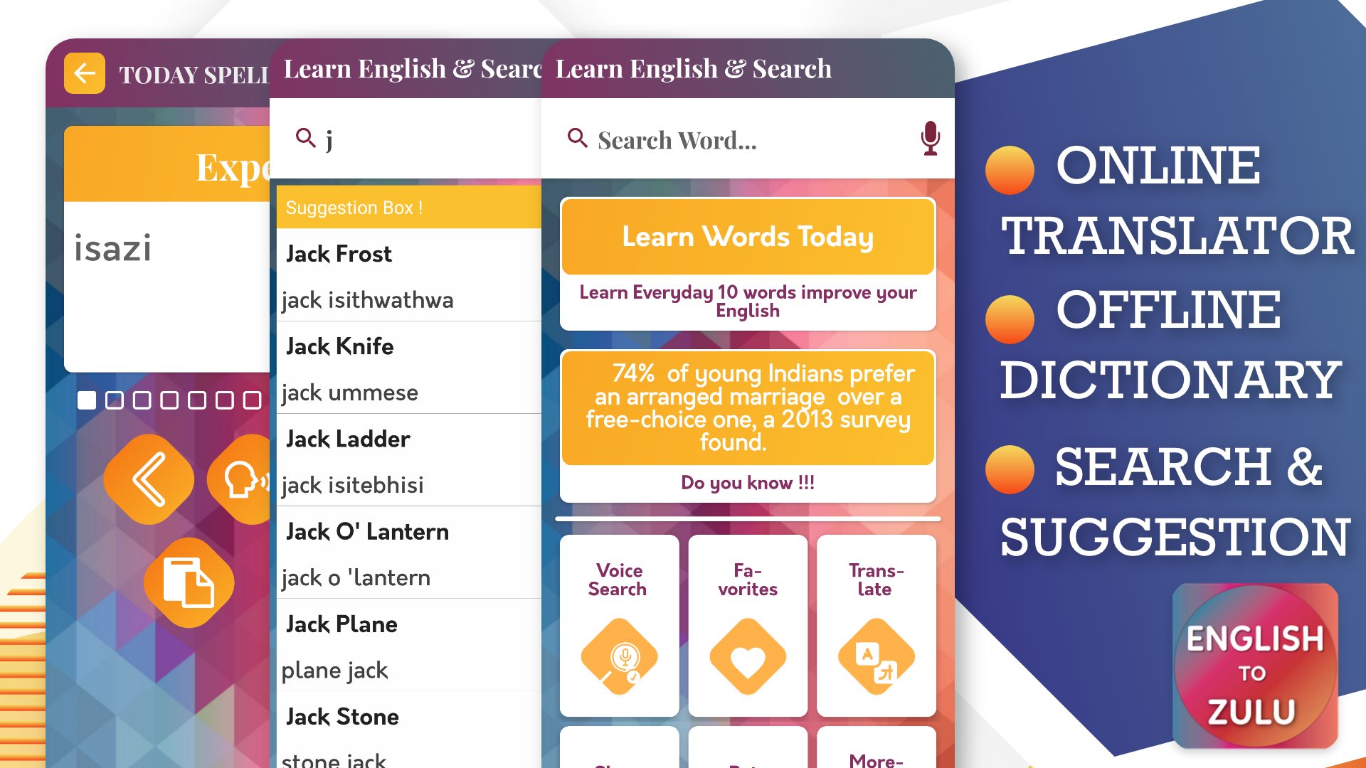Welcome to English to Zulu offline and free dictionary with also available in English to Zulu online translator.