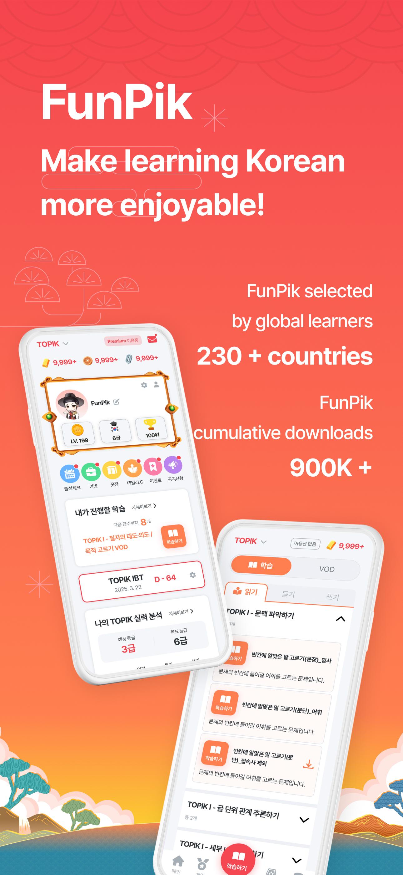 If you want to study Korean effectively and enjoyably, from TOPIK preparation to daily conversation, download FunPik now.