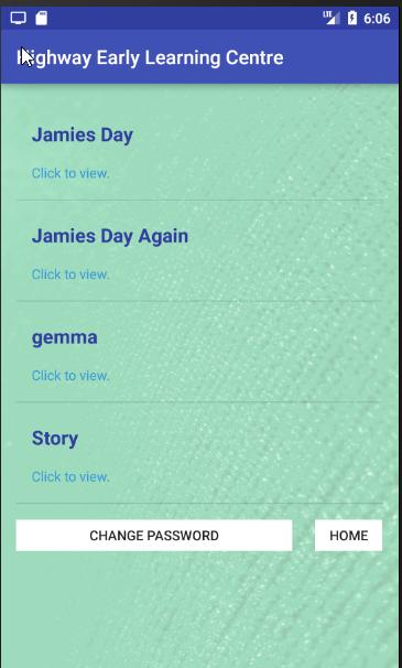 This application is designed for parents and care givers of children who attend the Highway Child Care and Early Learning Centre. Users will be able to view monthly newsletters, view links to parent resources, information about the Highway Child Care and Early Learning Centre and also login to view information about their child. Additionally users can receive reminders about upcoming events and have them saved to their calendar.