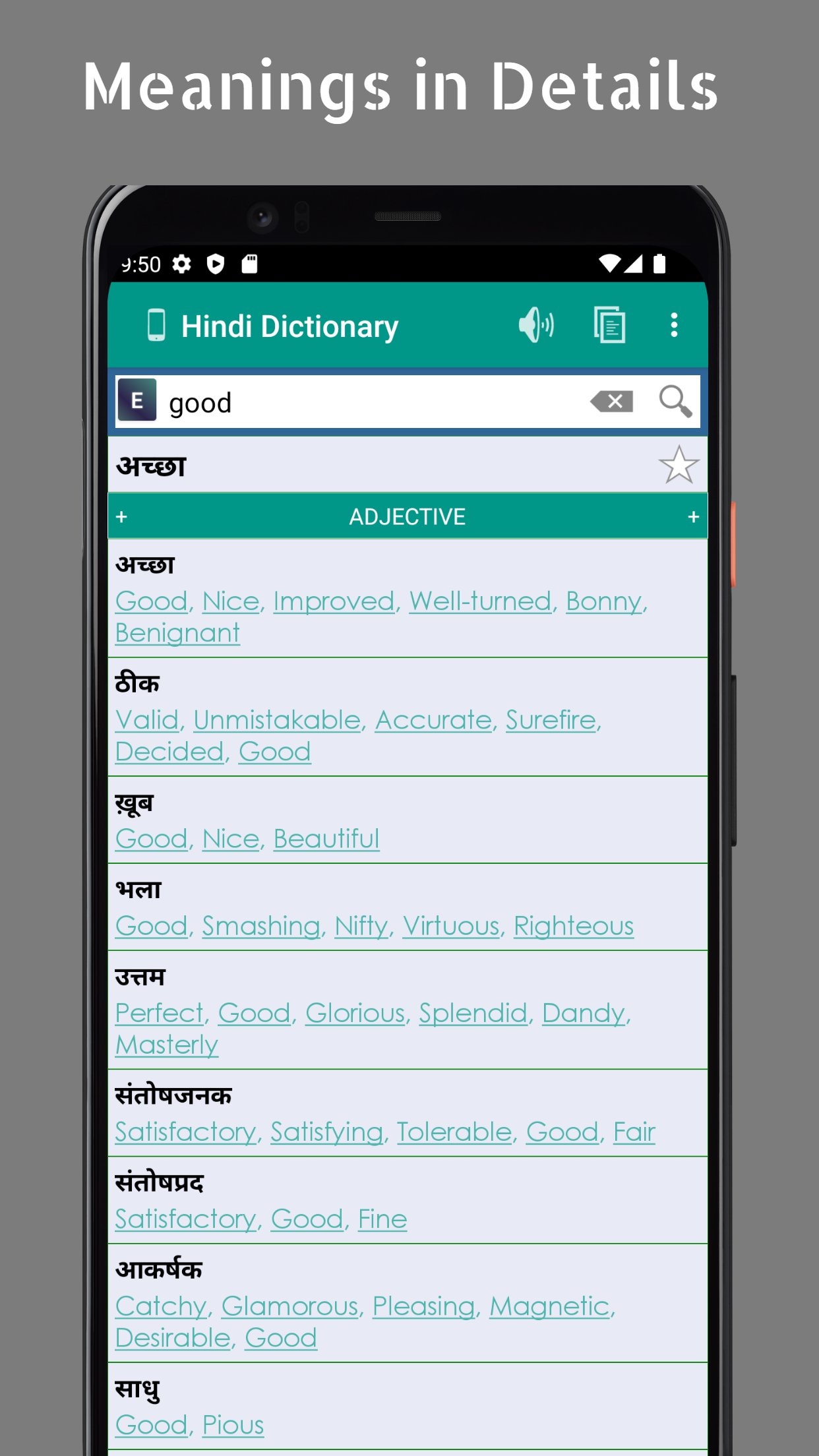 Need a 100% free offline dictionary that can give you the detailed Hindi meanings of any English word?