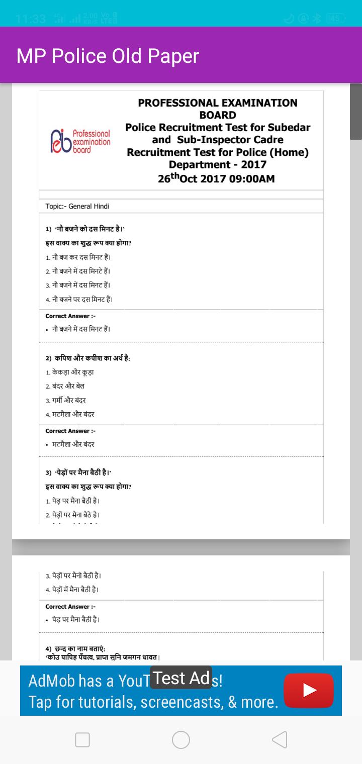 This app contains all previous year question papes of Madhya Pradesh Police exam conducted by Madhya Pradesh Profession Board Examination (MPPEB).