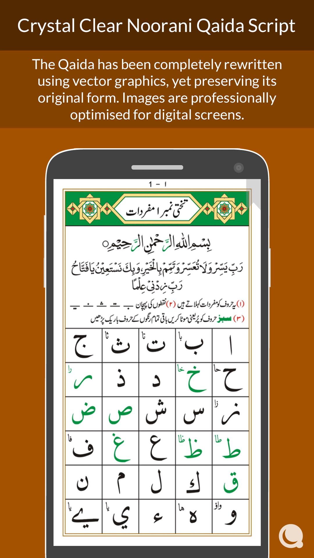 - Crystal Clear Noorani Qaida (Indian Edition) Script has been completely rewritten using vector graphics, yet preserving its original classical form.