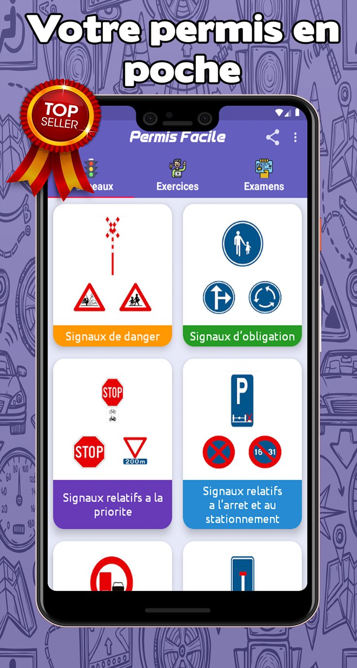 L’app propose des simulations d’examen pour compléter votre préparation à l'examen théorique du permis de conduire